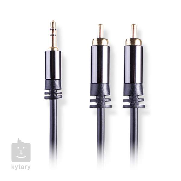 Stereo audio kabel s konektory 3,5 mm Jack samec – 2x RCA. Nabídne zlacené konektory, vodič z bezkyslíkaté mědi a kvalitní stínění, vnější opletení zvyšuje odolnost a zabraňuje nepříjemnému zamotávání.