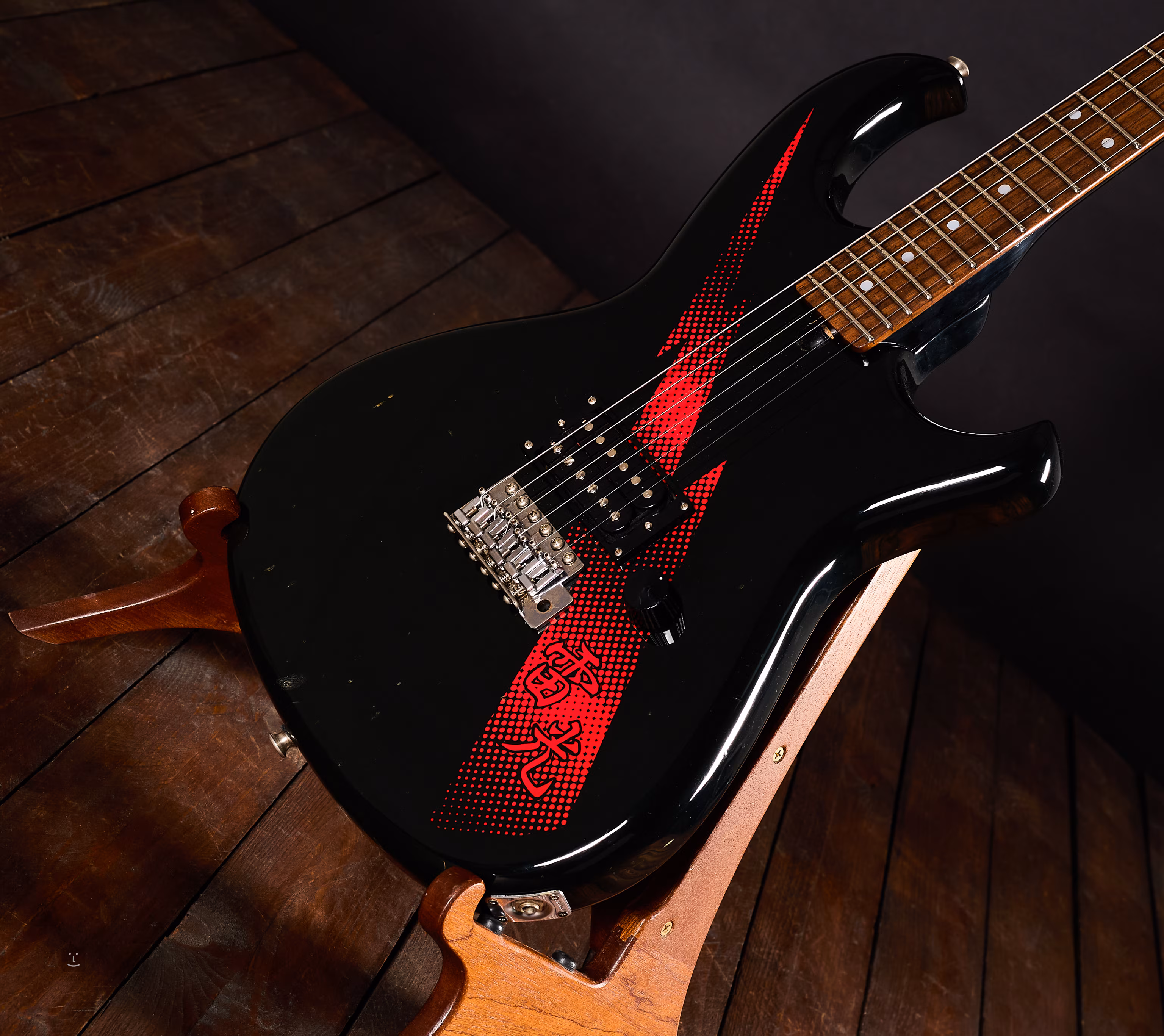 Japonská vintage kytara vyrobená v roce 1983 v legendární továrně Matsumoku. Nástroj má původní grafiku Inazuma (červený blesk) a upgradovaný snímač - český butikový od MIchala Tůmy s push/pull rozepínáním.