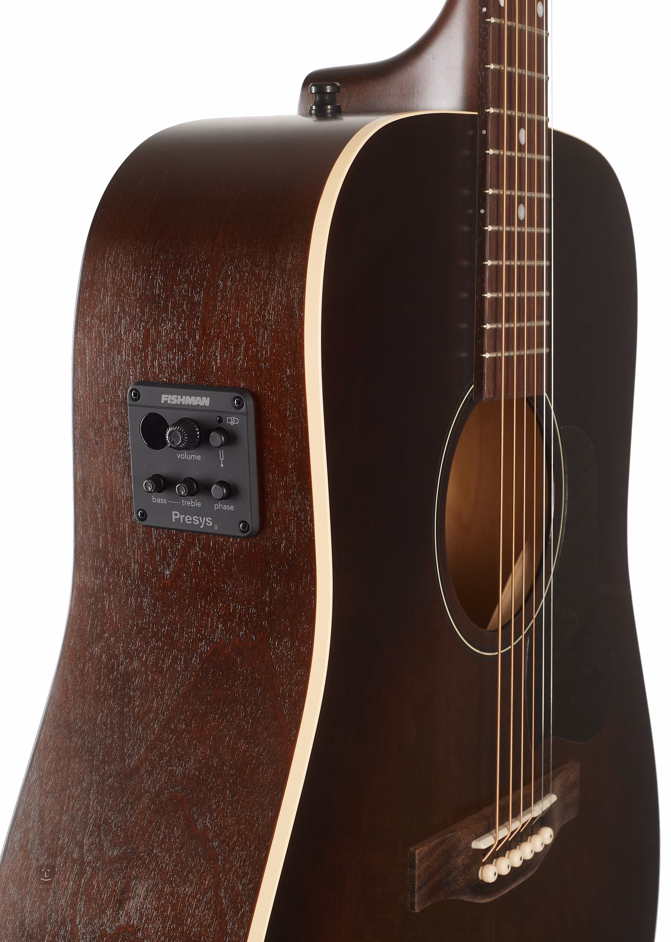 Možnost ozvučení nabízí podkobylkový piezo snímač Fishman Sonicore a předzesilovač Fishman Presys II s ovladačem hlasitosti, dvoupásmovým ekvalizérem, tlačítkem Phase pro potlačení efektu zpětné vazby a zabudovanou ladičkou.