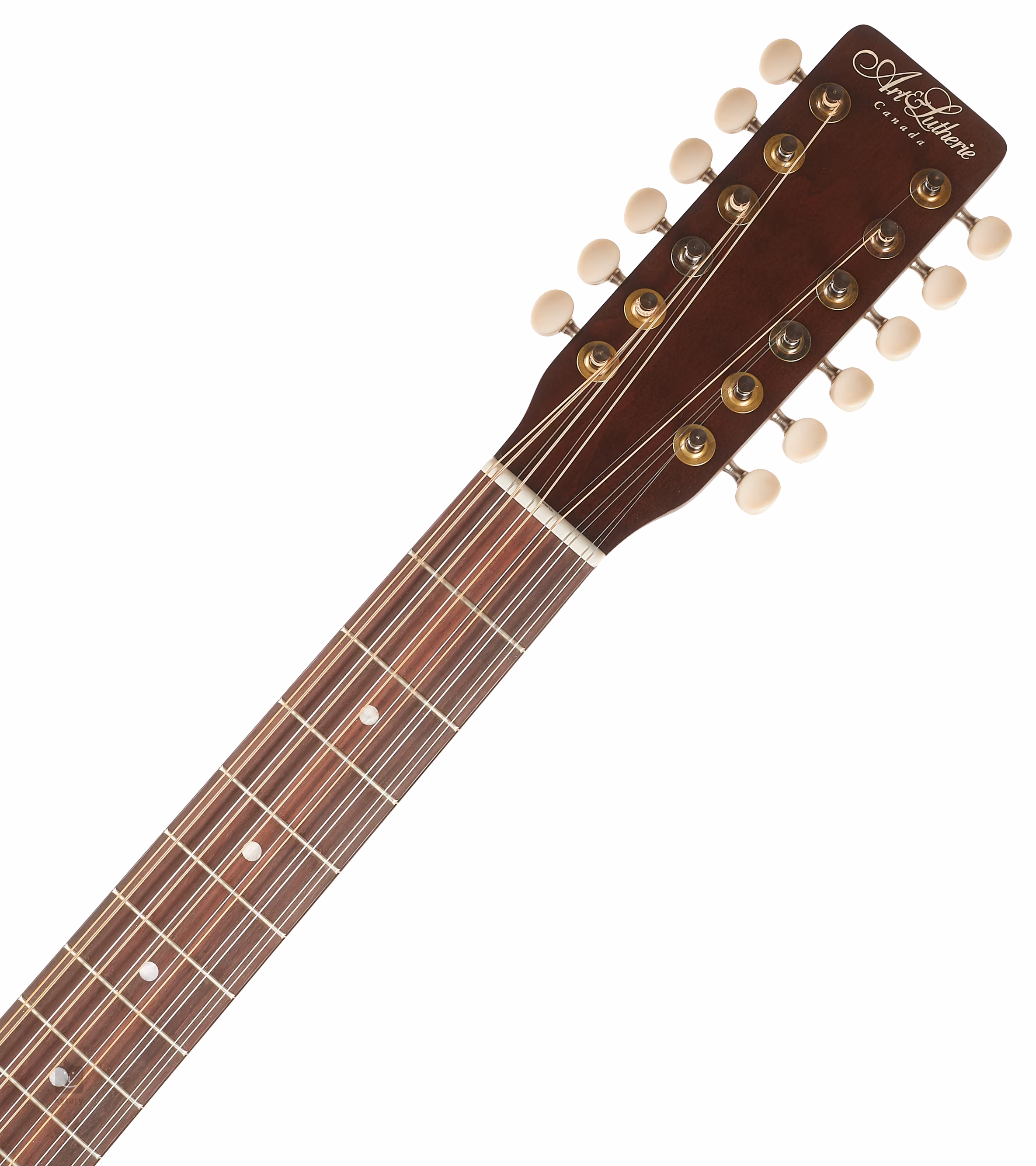 Dvanáctistrunná elektroakustická kytara Legacy 12 Bourbon Burst CW Presys II z dílen kanadské firmy Art and Lutherie odkazuje svým vzhledem i zvukem k nástrojům z první poloviny dvacátého století. Modely Legacy vyplňují mezeru mezi drobnými Parlory a většími Dreadnoughty a představují tak dobrou volbu pro široké spektrum muzikantů (od folkařů po bluesmany).
