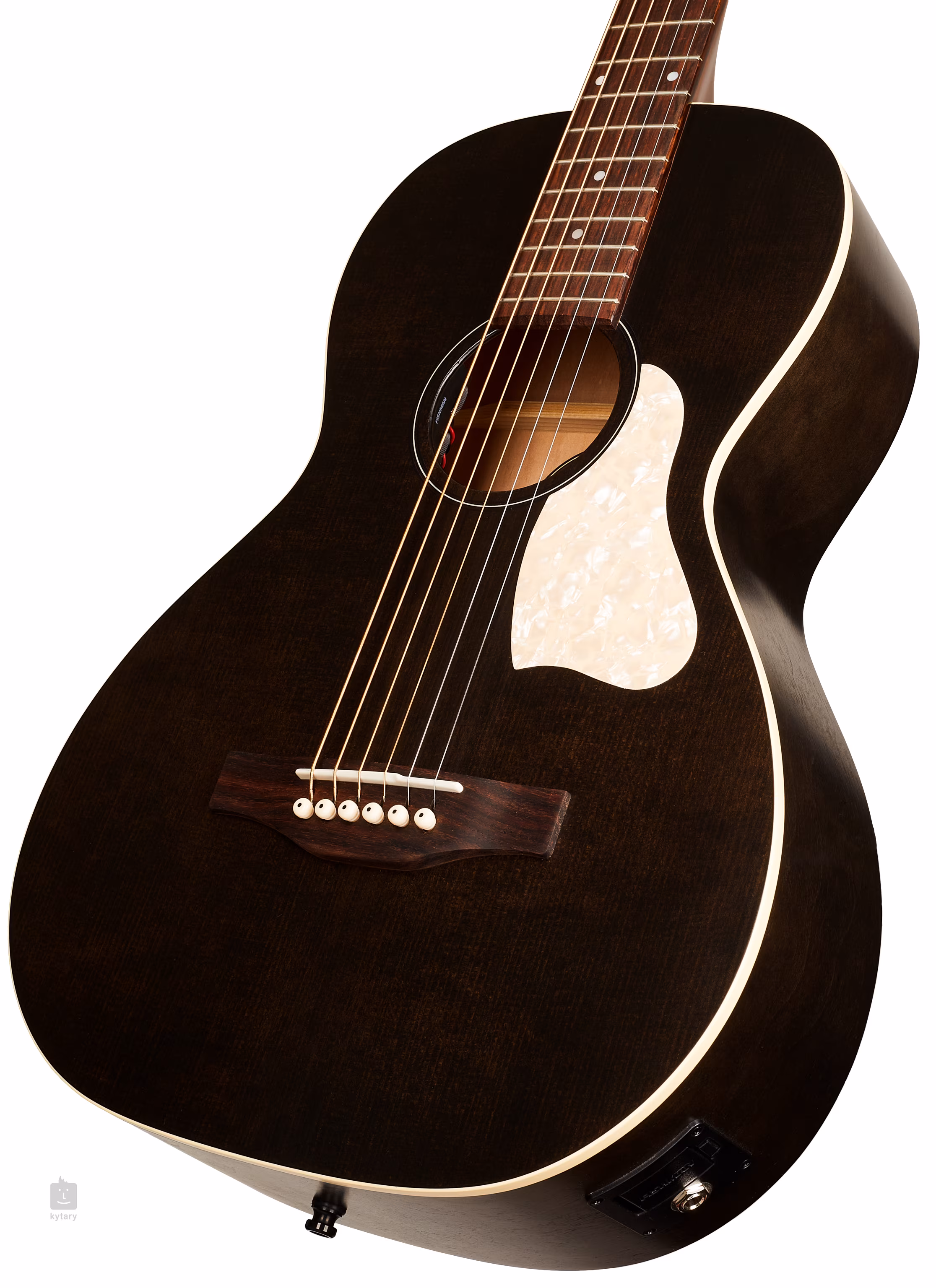 Možnost ozvučení nabízí podkobylkový piezo snímač a předzesilovač Fishman s ovladači hlasitosti a tónové clony v ozvučnicovém otvoru kytary.