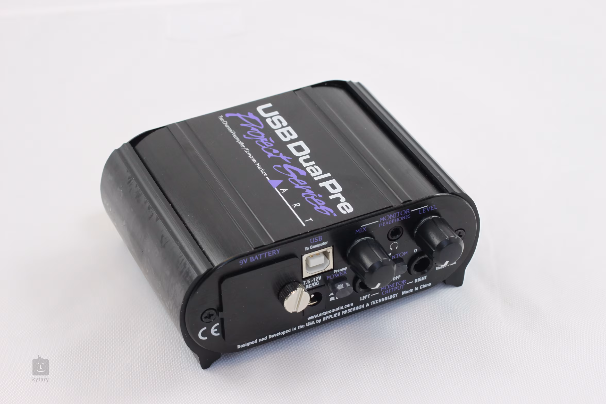 The USB Dual Pre is powered via the USB bus. An internal 9 Volt battery, or optional external 12V power supply (or any combination of USB, battery & power supply) can be used depending on application. When running powered by battery alone, you should expect in excess of 50 hours of operation with phantom power off. Battery life will drop to approximately 20 hours (depending on microphone) when phantom powering is engaged (still enough time to get through an average session).