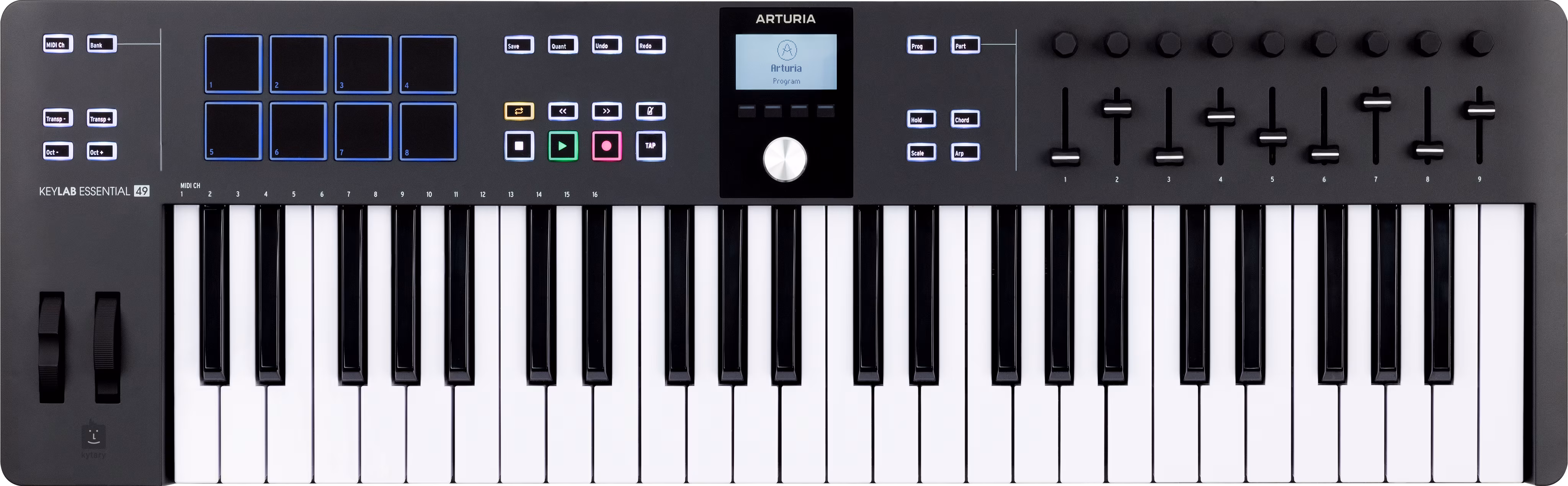 Arturia KeyLab Essential 49 MK3 je inovovaná verze oblíbeného MIDI kontroleru s hybridní dynamickou klaviaturou, 49 klávesami plné velikosti, 8 RGB podsvícenými pady, kompletní integrací se software Arturia Analog Lab, podporou ovládacích protokolů MCU i HUI a přednastavenými scripty pro ještě lepší kontrolu vybraných moderních DAW.