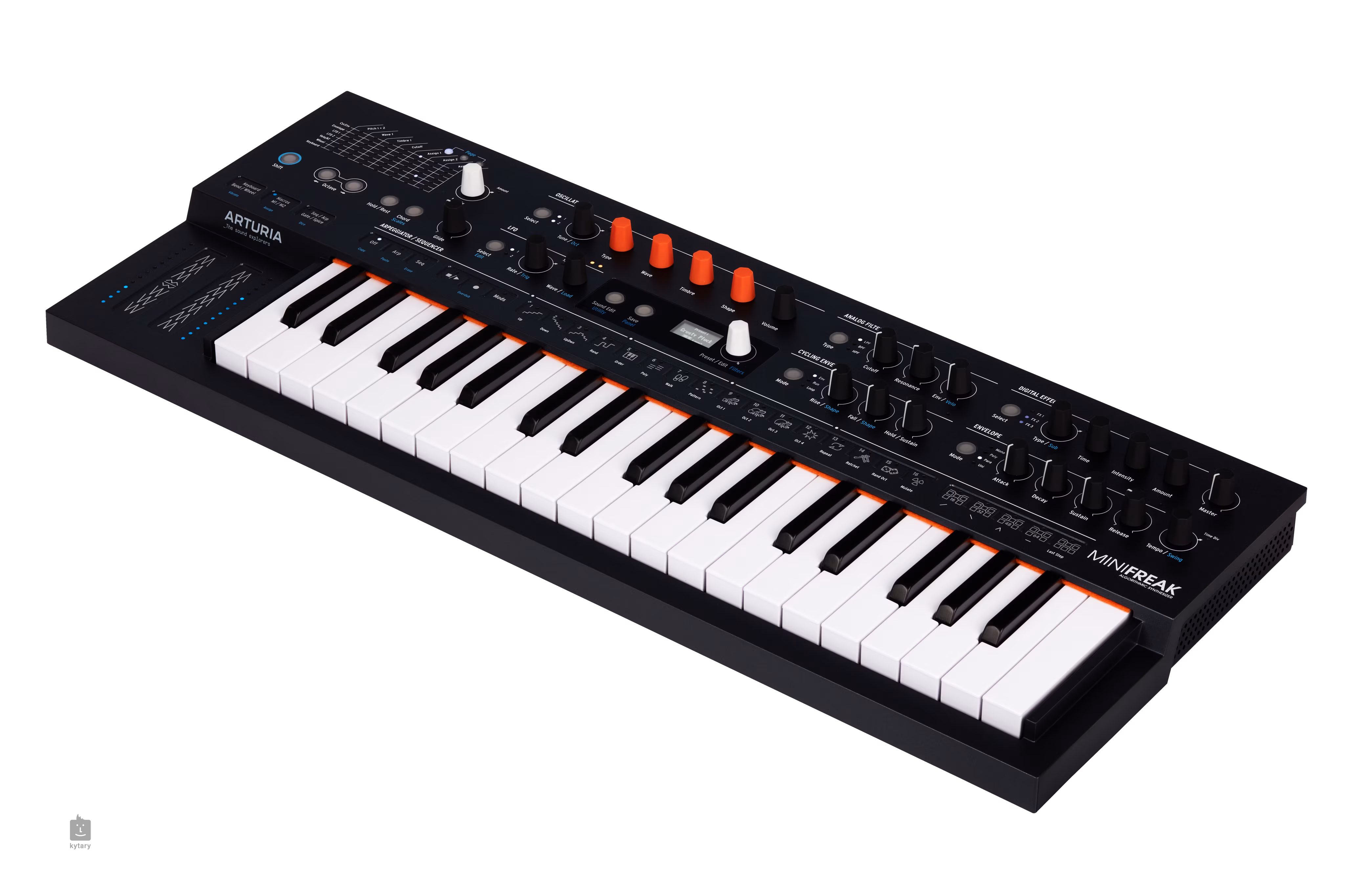 Arturia MiniFreak je originální syntezátor s digitálními oscilátory, analogovým filtrem a zvuky z populárního eurorackového modulu Plaits od Mutable Instruments. Pracuje v monofonním i parafonním režimu a nechybí mu sekvencer, arpreggiátor, modulační efektová jednotka ani pokročilé náhodné funkce. MiniFreak rozhodně patří k nejzajímavějším a nejinspirativnějším nástrojům v této cenové relaci.