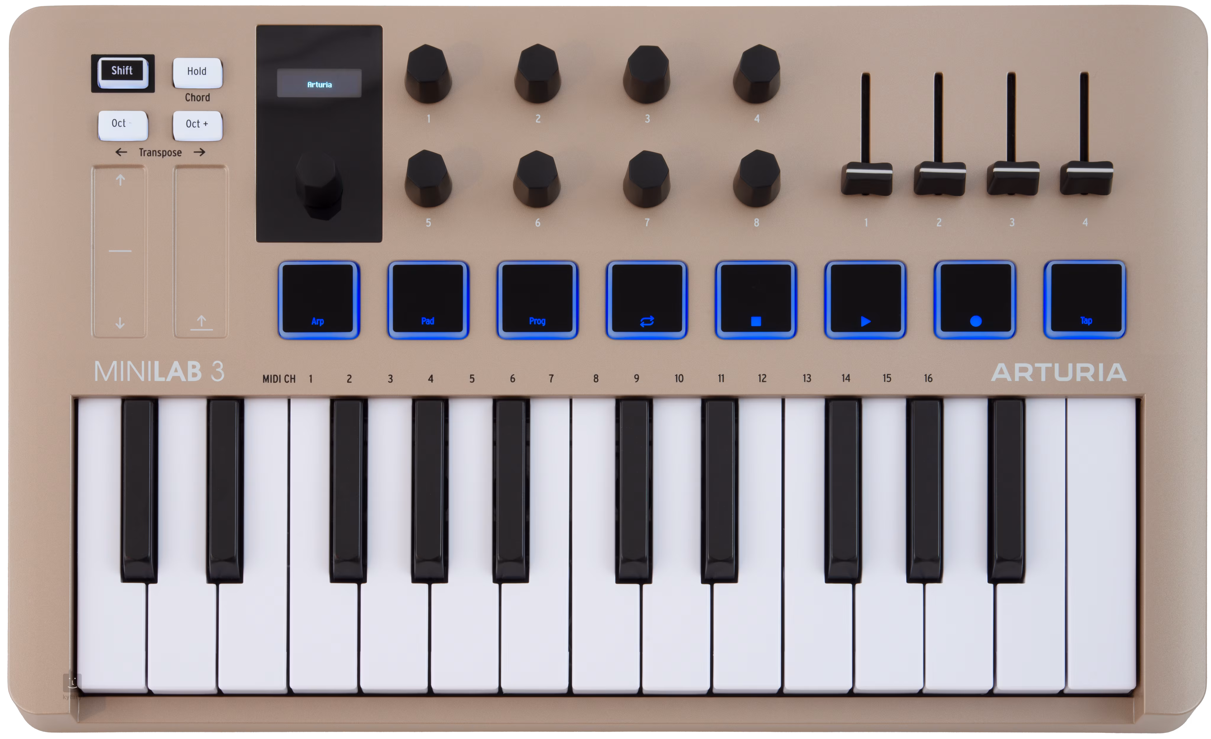 MiniLab 3 je ultrakompaktní MIDI kontrolér, který může být zároveň vstupní branou pro úplného začátečníka, ale oblíbí si jej i profesionální hudební tvůrci.