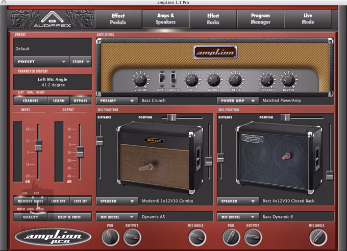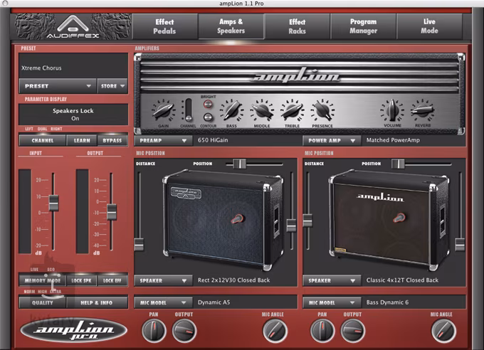 K dispozici je 9 kytarových předzesilovačů, 7 zesilovačů, 12 reproboxů, 8 mikrofonů a 30 efektů věrně napodobující zvuk toho nejoblíbenějšího vybavení. Signál virtuálního zesilovače si můžete rozdělit do dvou nezávislých kabinetů a každému z nich přiřadit jiný mikrofon, vzdálenost i umístění mikrofonu na ose. V každém presetu lze navíc použít až 8 efektů, takže si zvuk doladíte přesně podle svých představ.