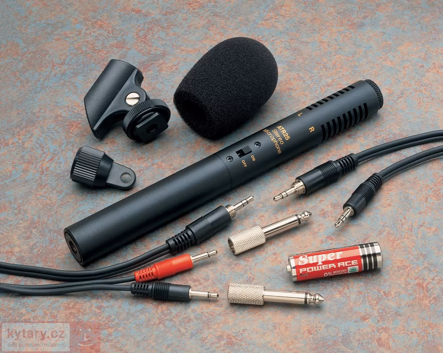 stereo kond. video/record. mikrofon, vypínač, kabely, redukce, držáky, baterie