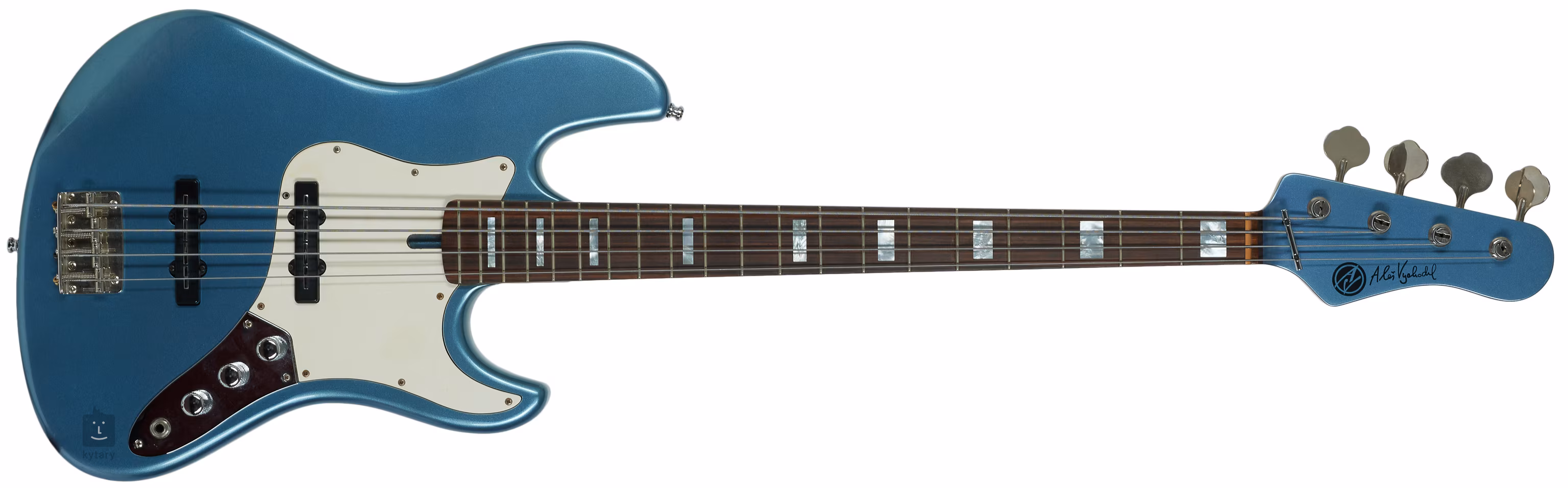 Klasická baskytara tvaru JB z dílny věhlasného českého výrobce Aleše Vychodila.