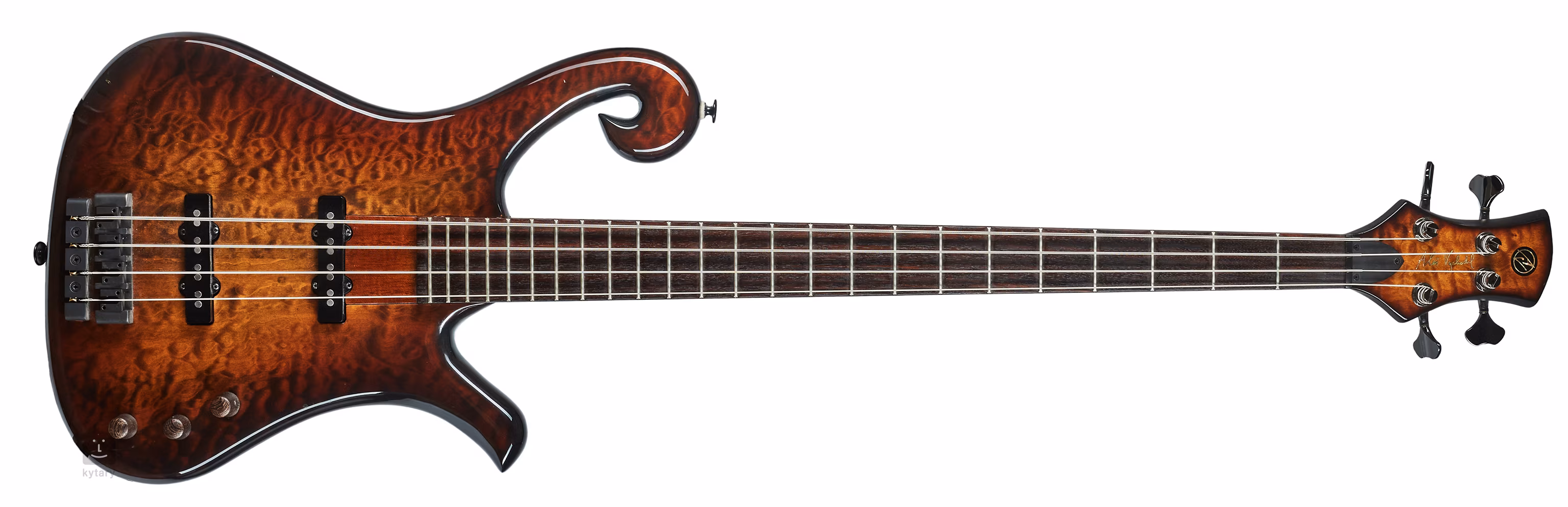 Tělo a krk jsou ze vzácného mahagonu "swietenia", který získal Aleš z továrny Furch. Top je vyrobený z obláčkového javoru.