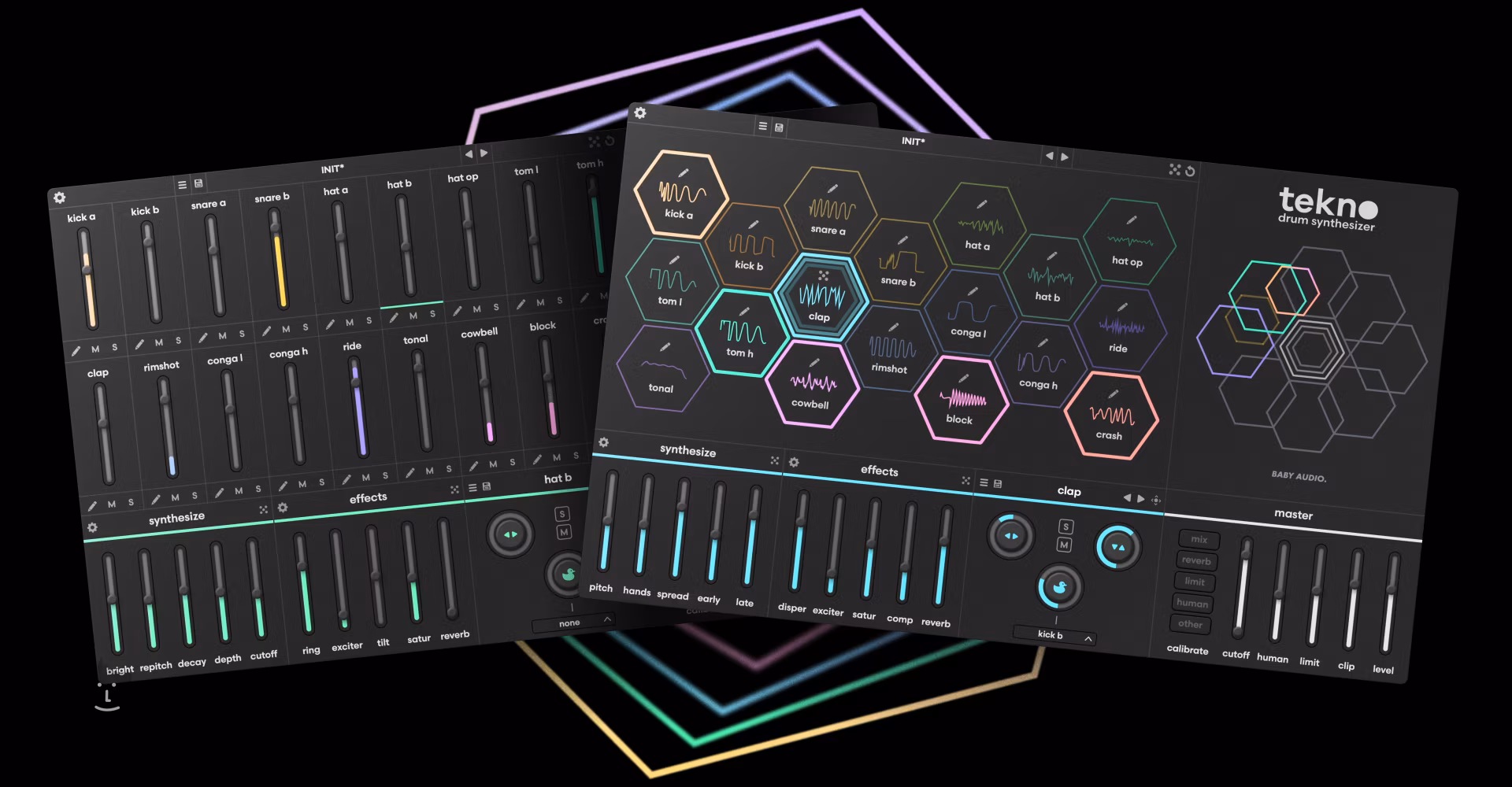 Baby Audio Tekno je moderní drum synth plugin pro tvorbu tvrdých, hlubokých a současně živých elektronických bicích – kompletně bez použití samplů. Pokud chcete budovat vlastní kopáky, snary, hi-haty i perkusní prvky od základů a mít plnou kontrolu nad jejich charakterem, Tekno vám dává do rukou výkonný nástroj inspirovaný legendárními drum machine 80. a 90. let, ovšem s možnostmi 21. století.