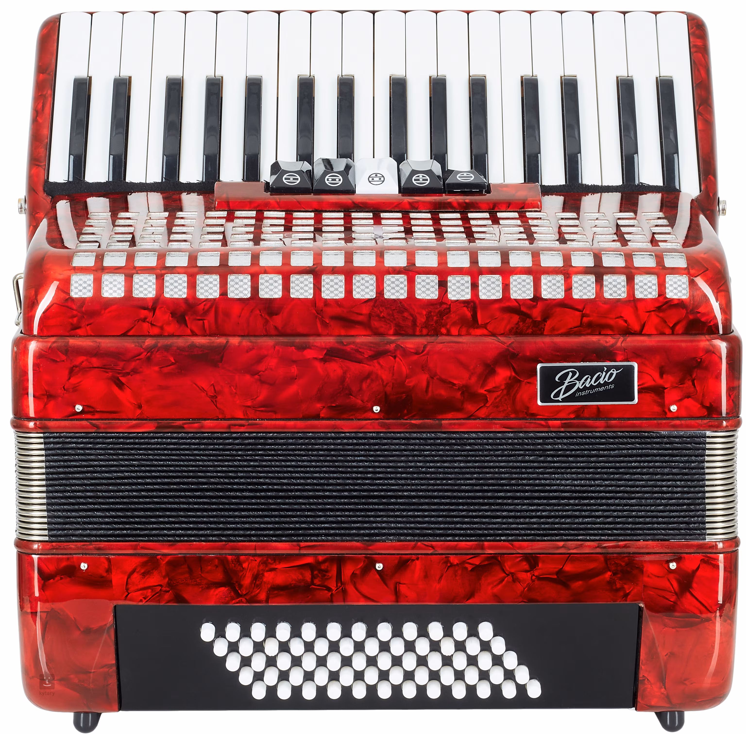 Značka Bacio nabízí cenově dostupné hudební nástroje vhodné pro úplné začátečníky. Klávesový akordeon AT3460 je dodáván v hliníkovém casu.