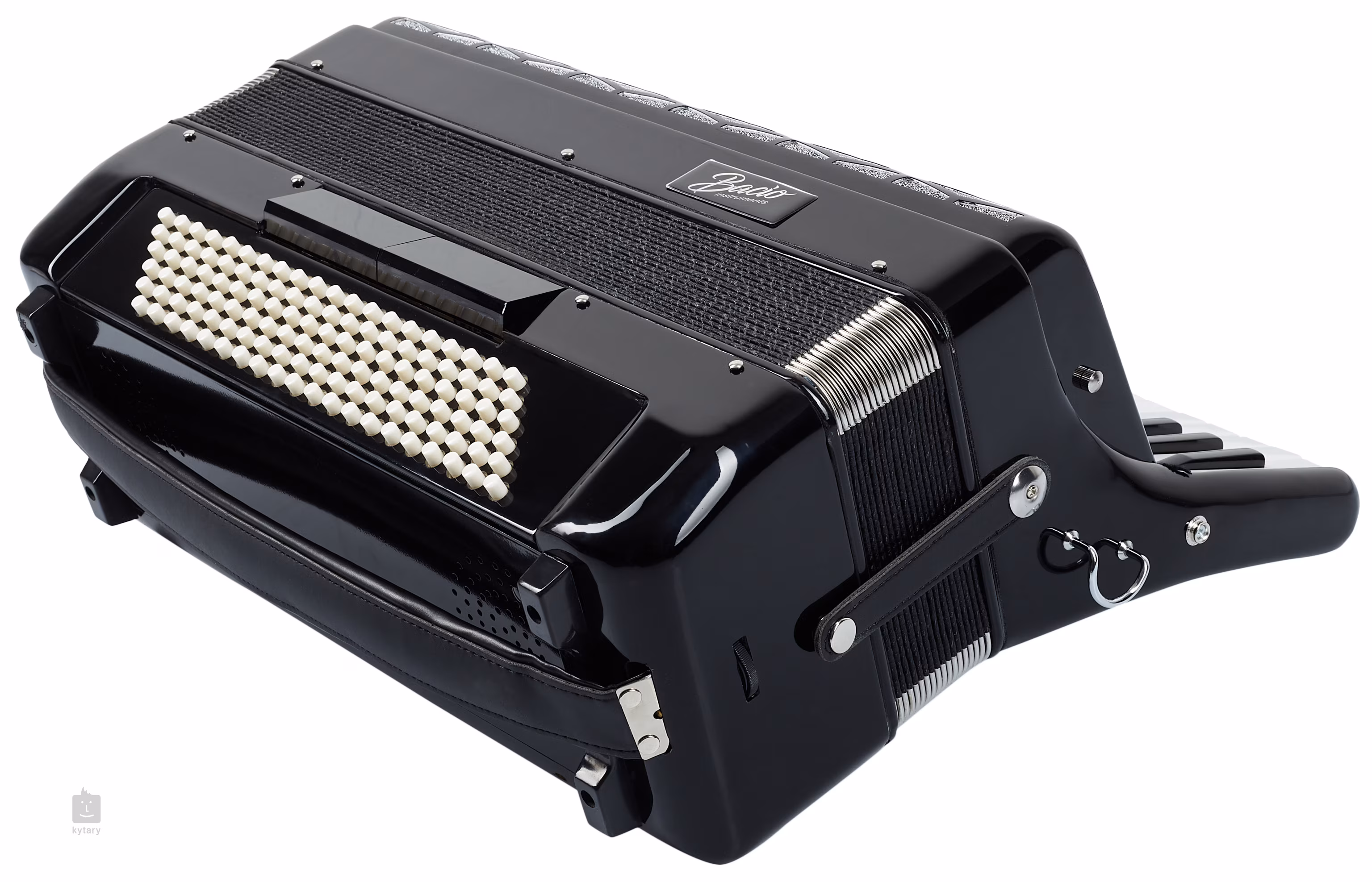 Značka Bacio nabízí cenově dostupné hudební nástroje vhodné pro úplné začátečníky. Klávesový akordeon AT41120 je dodáván v hliníkovém casu.
