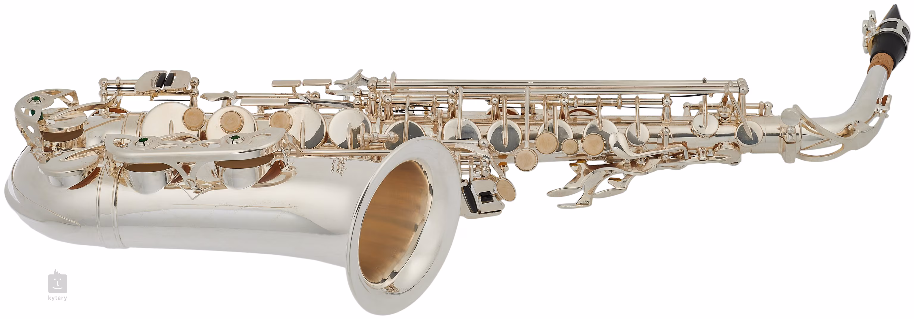 Altový saxofon BAS-100SG nabízí postříbřené tělo a mosazené pozlacené klapky. Saxofon je dodáván v měkkém pouzdru spolu s příslušenstvím (popruh, vytěrák).