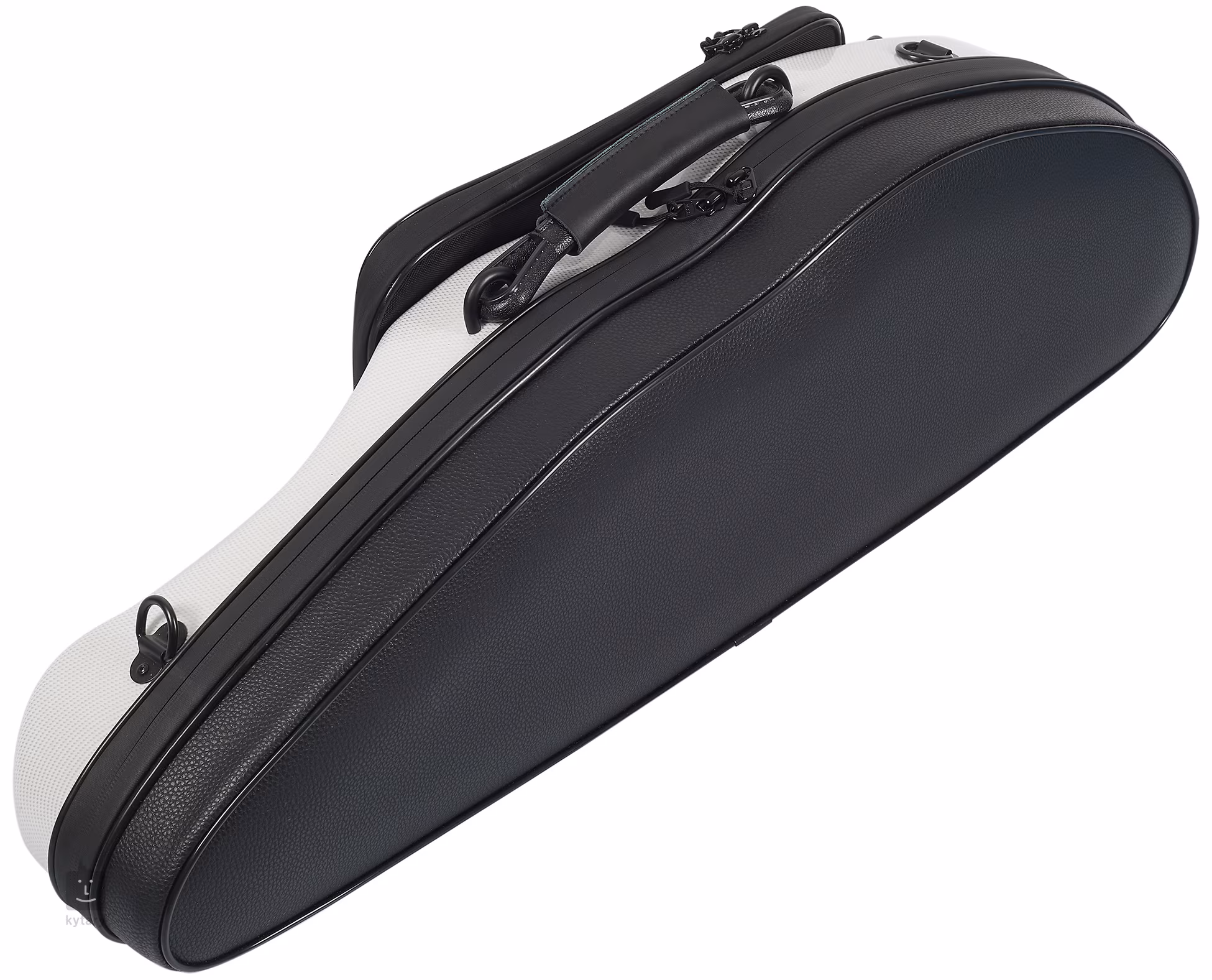 Kufr na altový saxofon zhotovený z kompozitního materiálu (karbonových vláken). Příslušenství uložíte do odděleného pouzdra z umělé textilie. K manipulaci s kufrem lze použít madlo s koženým potahem.