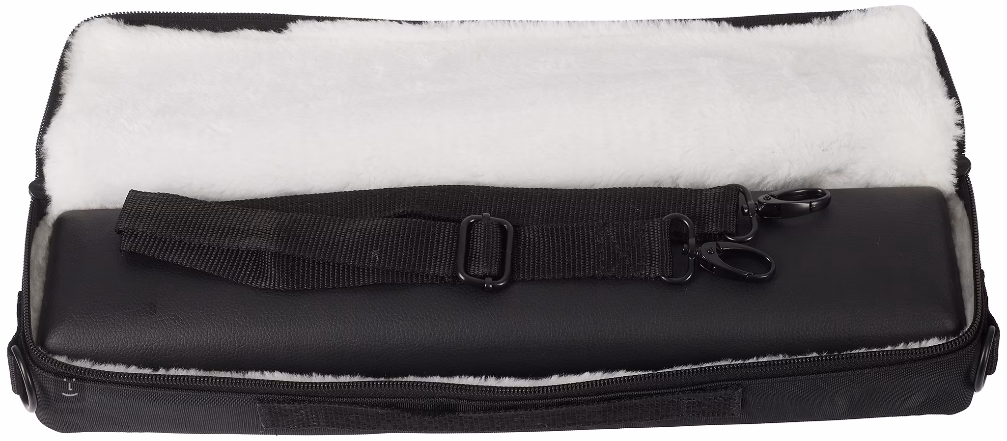 Pevné pouzdro na příčnou flétnu s koženkovým potahem. Pouzdro je dodáváno v polstrovaném obalu spolu s odnímatelným popruhem na rameno.