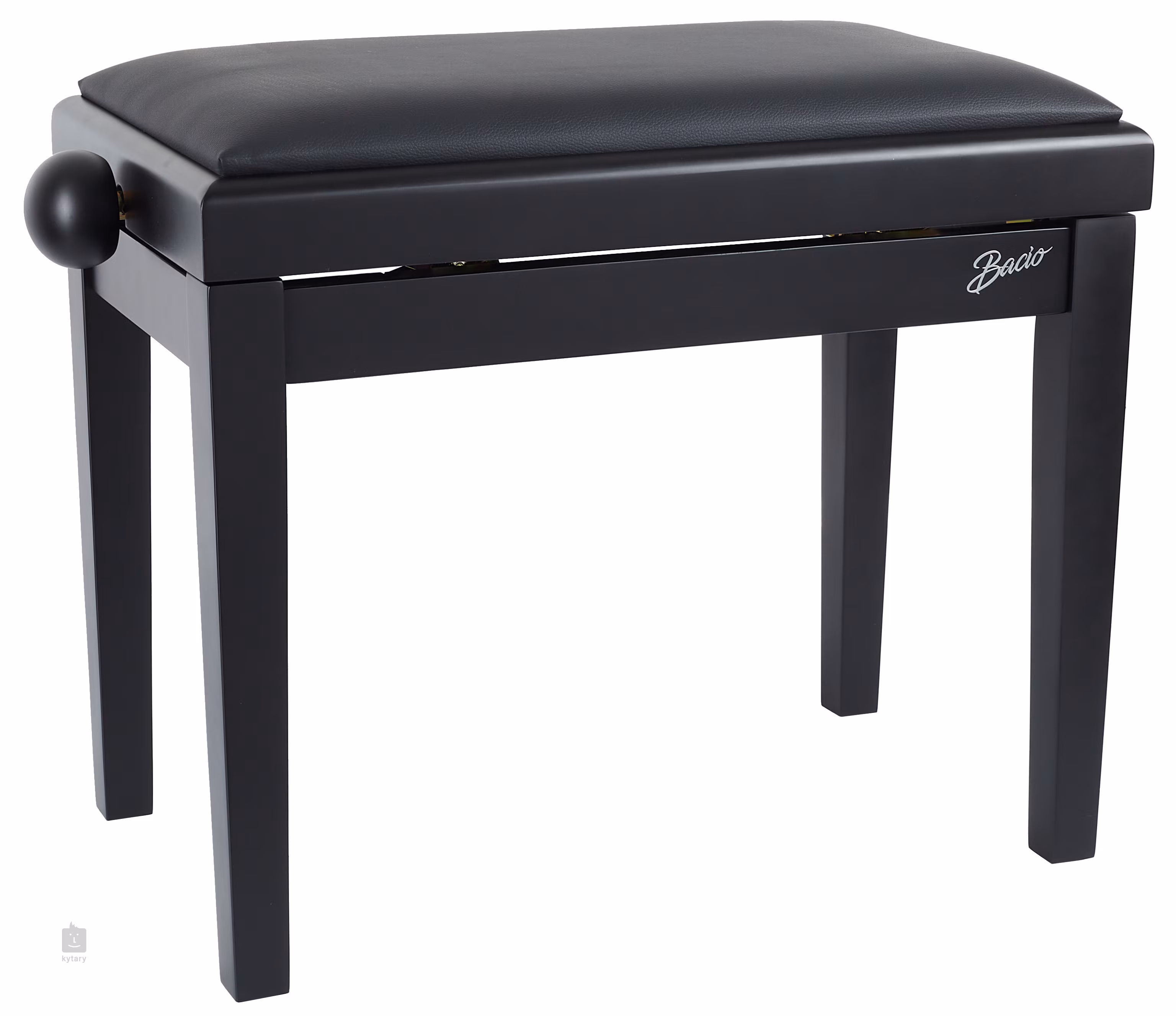 Klavírní stolička v elegantním černém provedení, která perfektně doplní téměř jakýkoliv interiér. Nastavitelná výška zajistí ideální přizpůsobení pro každého hráče a pohodlný sedák se postará o dokonalý komfort i při dlouhém cvičení. Stolička je dostupná v různých materiálech a barvách. Tato verze má matný koženkový sedák.