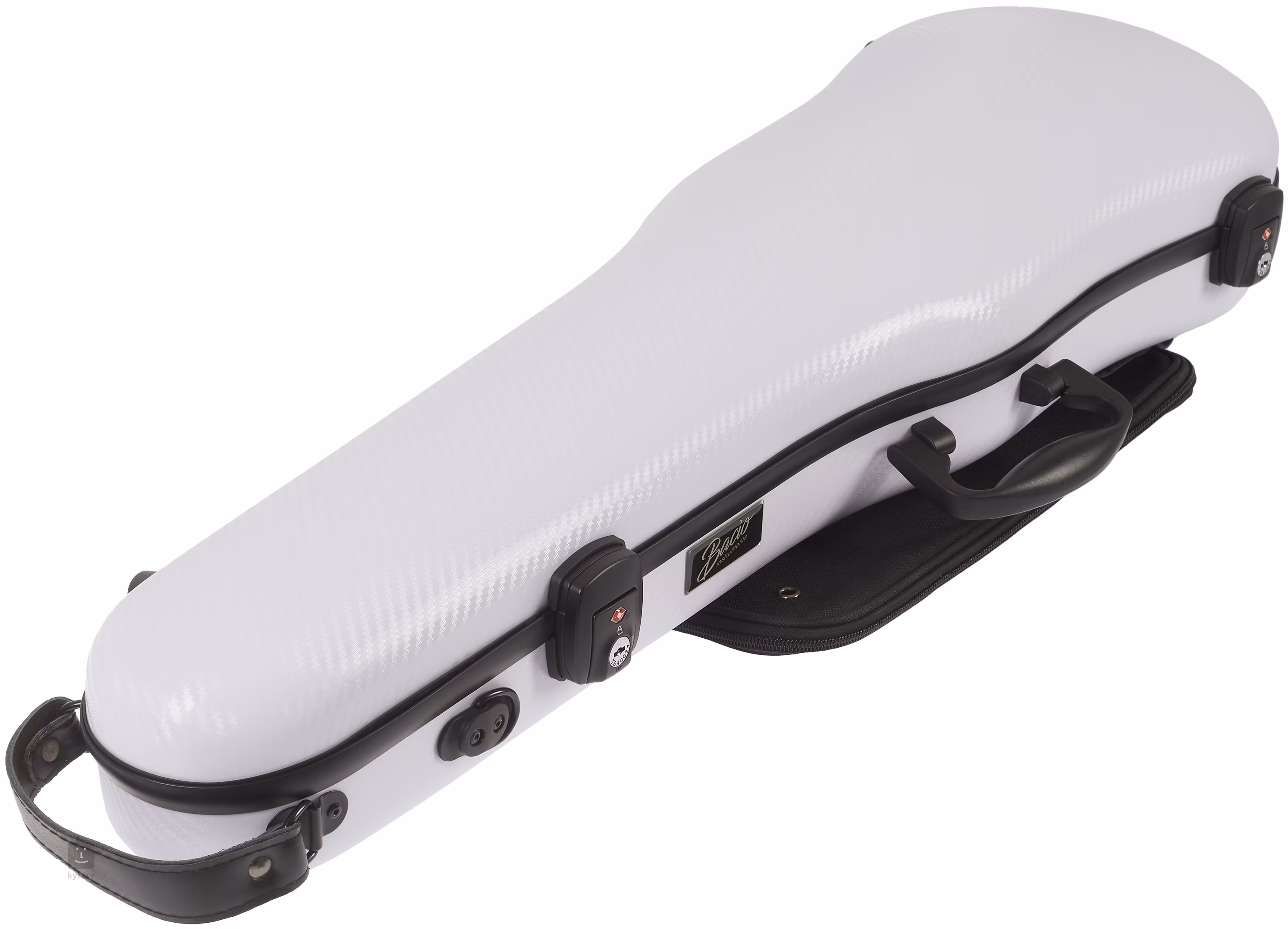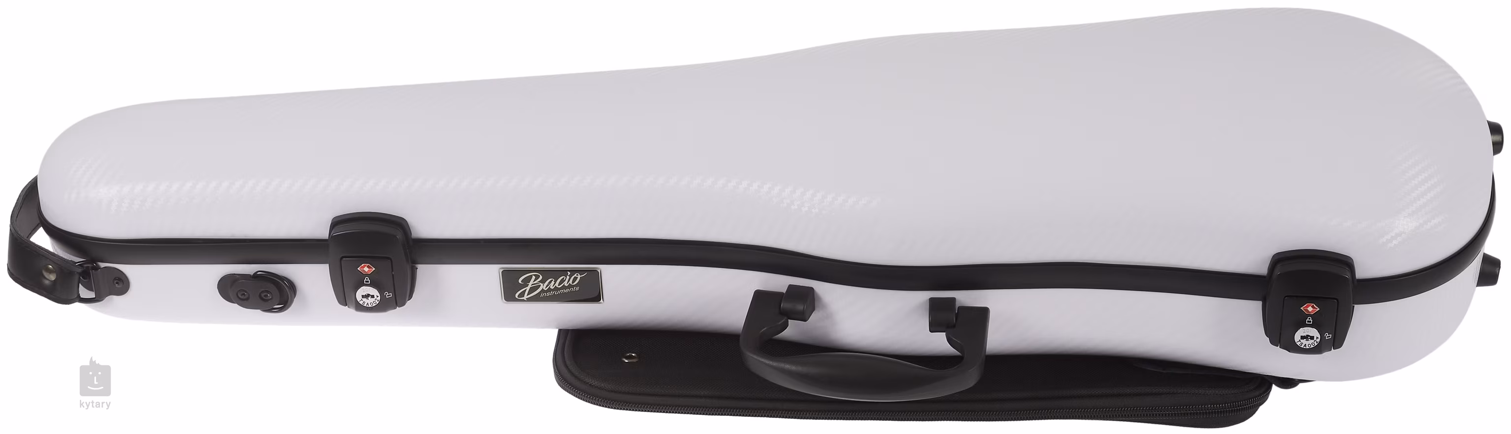 Pouzdro na housle zhotovené z karbonového kompozitu se dvěma zámky a odemykáním na kód/heslo, odnímatelnou kapsou na noty, držadly po stranách i na horní straně, dvěma popruhy na ramena a dvěma držáky pro smyčce.
