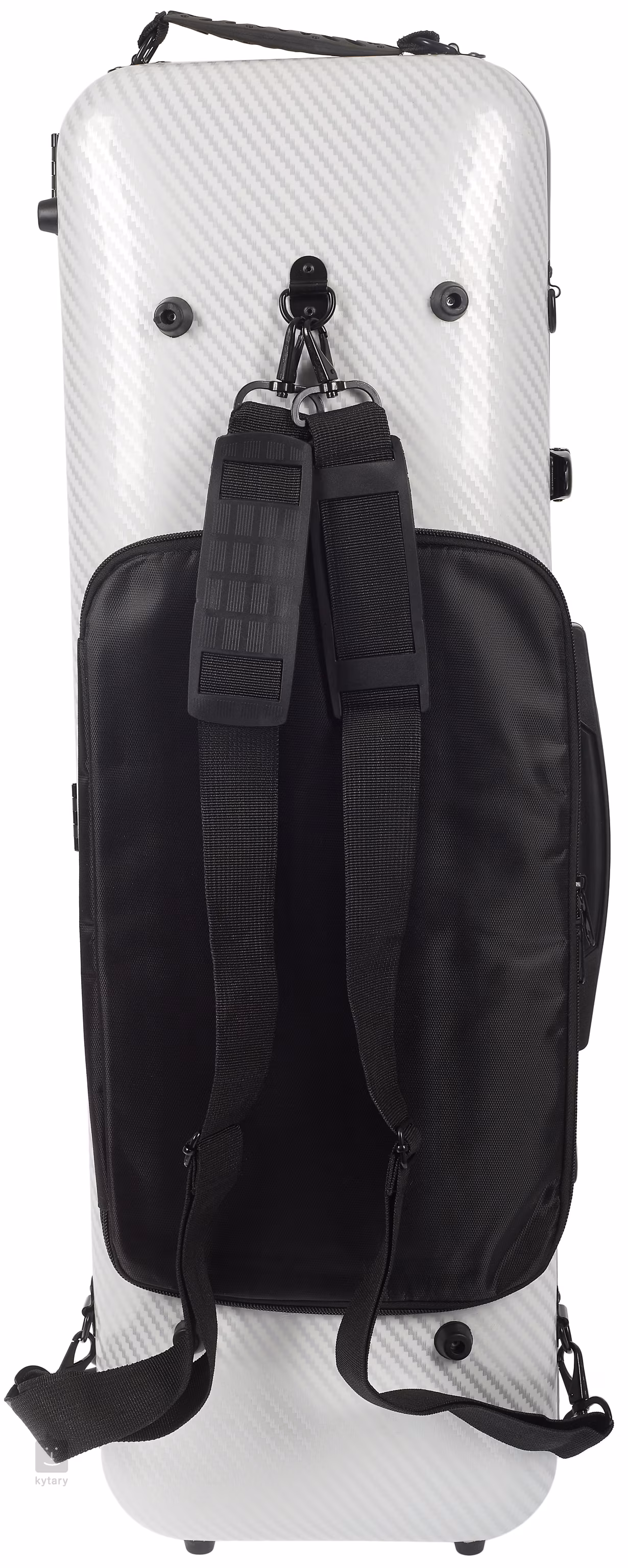 Pouzdro na housle zhotovené z karbonového kompozitu s kovovým kováním, pohodlným držadlem, sametovým potahem vnitřku pouzdra, pouzdrem na noty, dvěma držáky pro smyčce a popruhem.