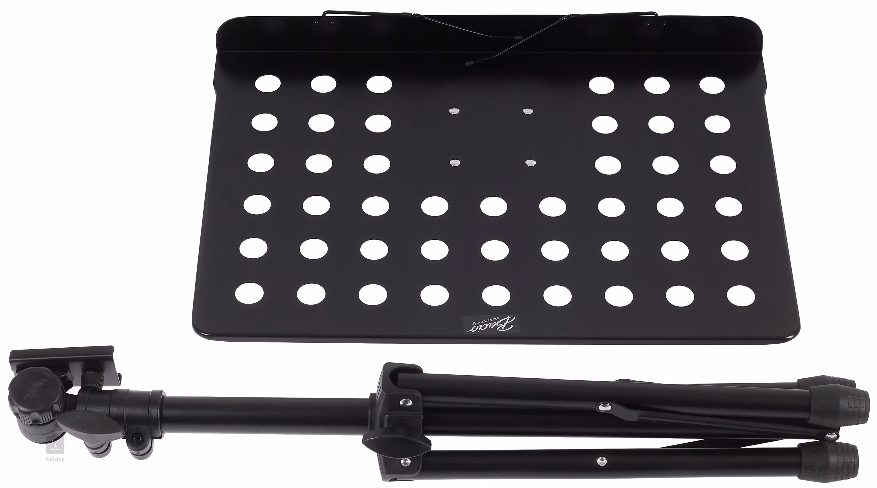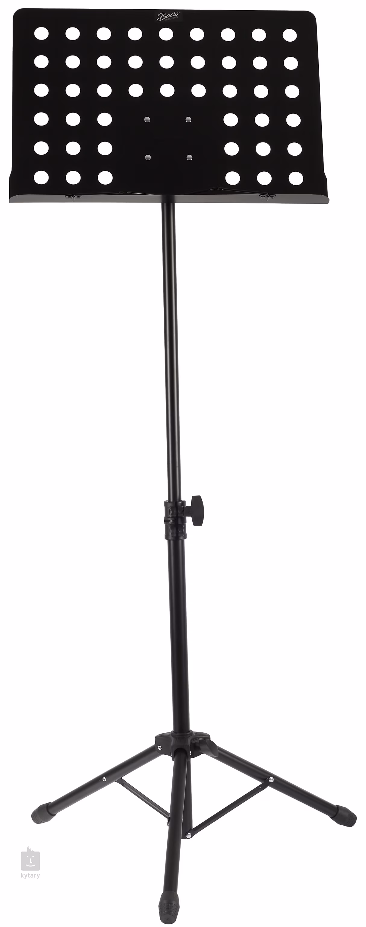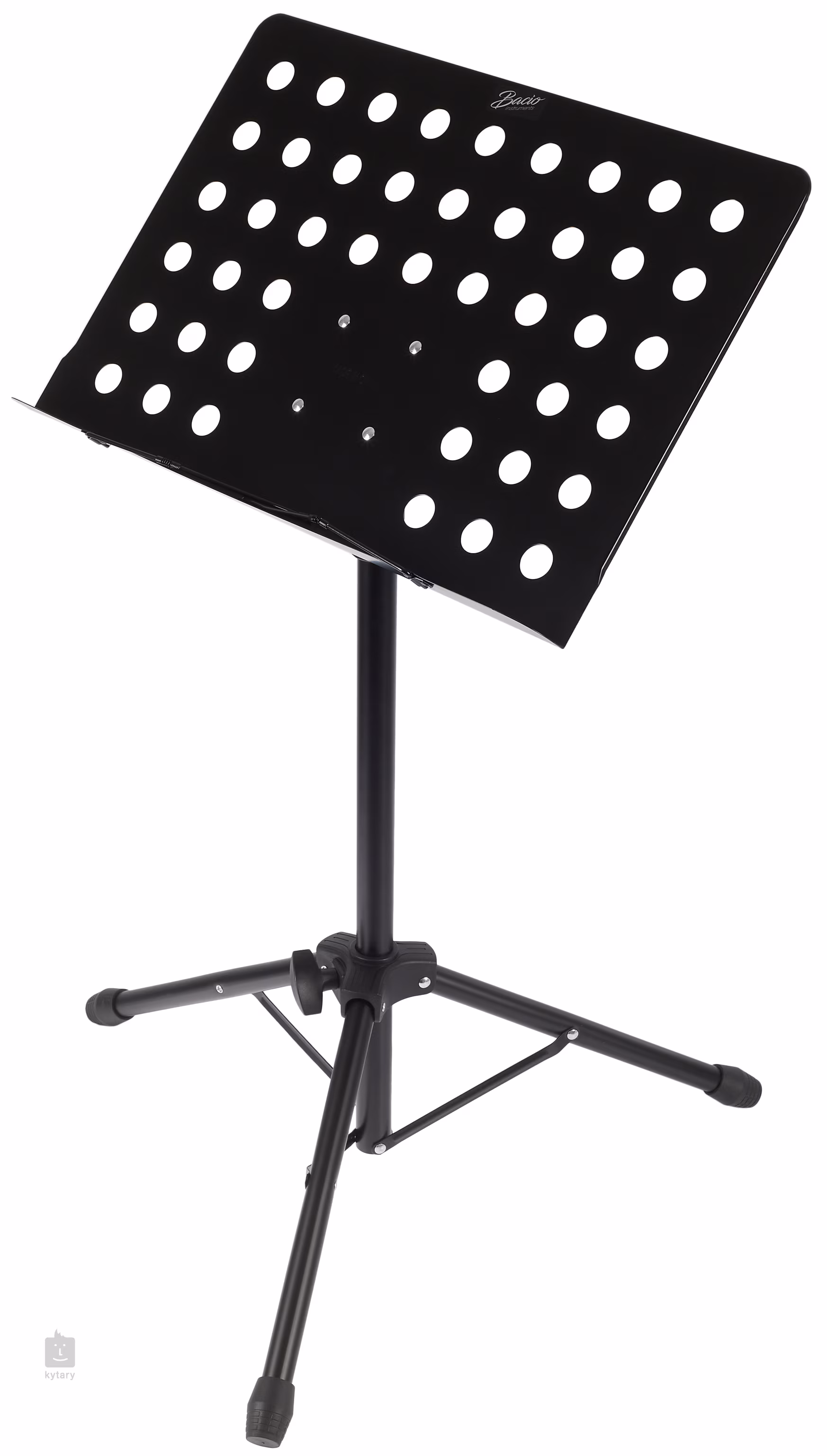 Bacio MS-15 je kovový notový stojan s bytelnou základnou na trojnožce, nastavitelnou výškou (800 - 1500 mm) a perforovaným pevným notovým pultem, který lze od stojanu oddělit.