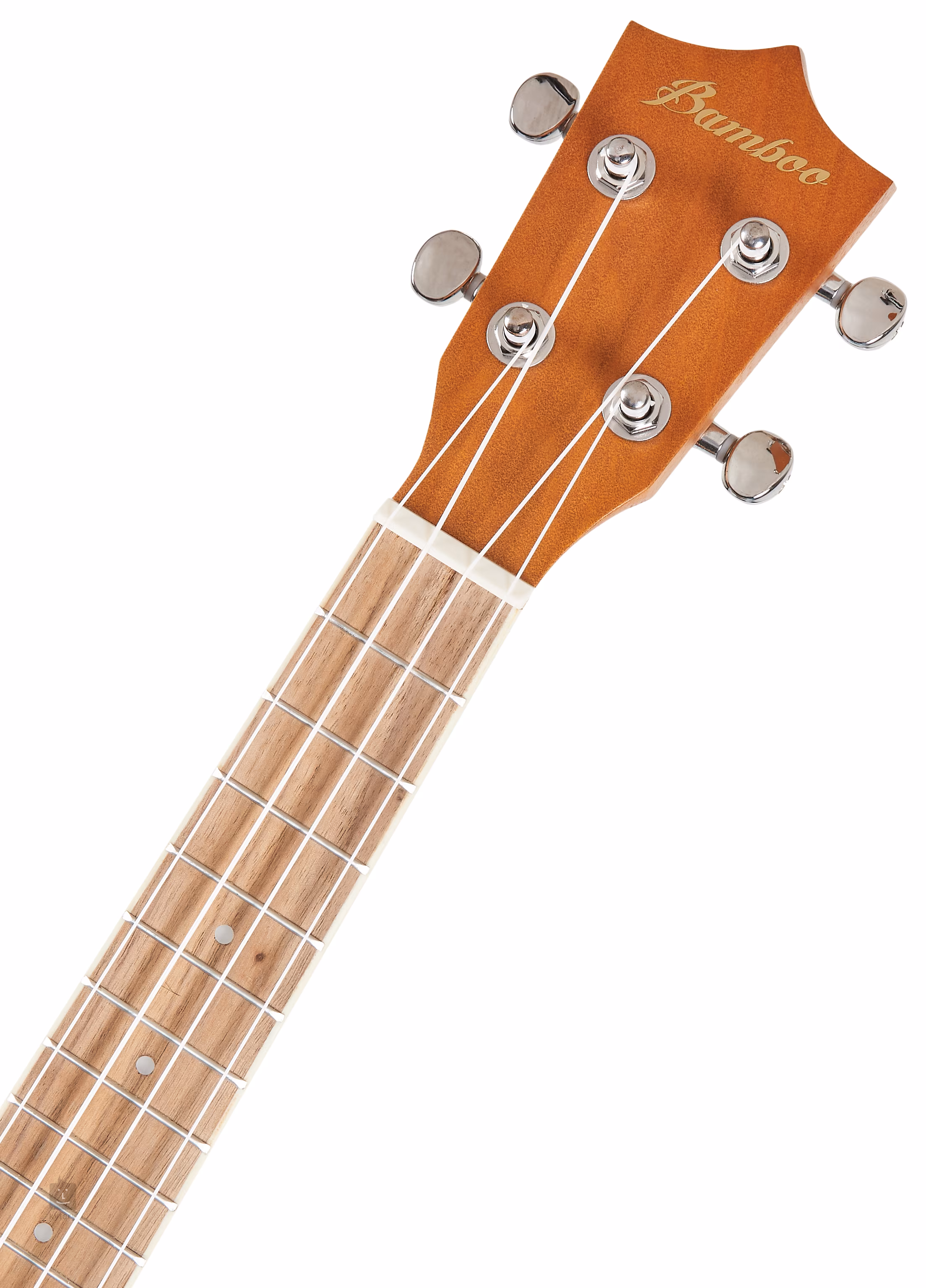Řada New Generation značky Bamboo nabízí cenově dostupná ukulele v koncertní a sopránové velikosti ozdobená pestrobarevnými grafickými motivy. Tělo tohoto koncertního ukulele je zhotoveno z vrstvené lípy. Ke krku z okoumé je přilepen ořechový hmatník osazený osmnácti pražci. Struny jsou přes nultý a sedlový pražec z kosti ukotveny ve firemních otevřených mechanikách a ořechové kobylce.