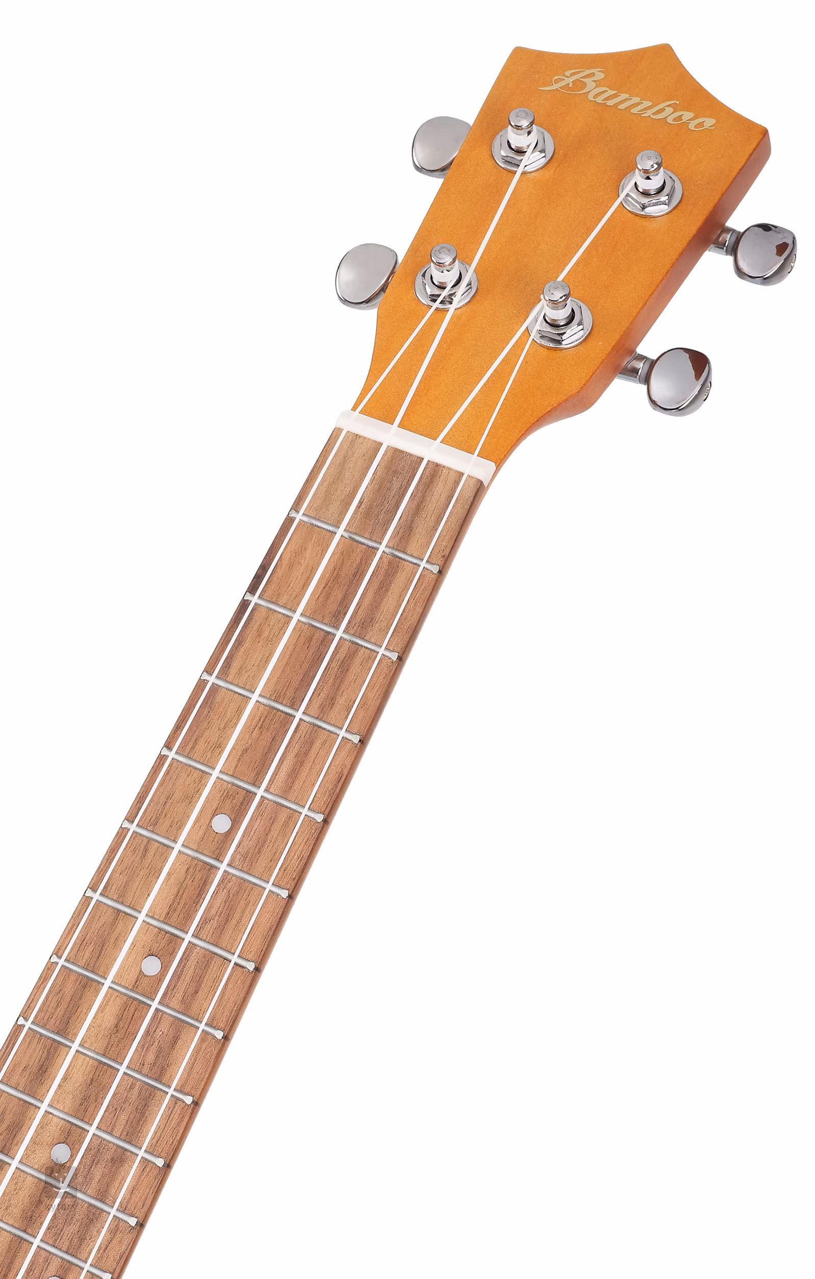 Řada New Generation značky Bamboo nabízí cenově dostupná ukulele v koncertní a sopránové velikosti ozdobená pestrobarevnými grafickými motivy. Tělo tohoto koncertního ukulele je zhotoveno z vrstvené lípy. Ke krku z okoumé je přilepen ořechový hmatník osazený osmnácti pražci. Struny jsou přes nultý a sedlový pražec z kosti ukotveny ve firemních otevřených mechanikách a ořechové kobylce.