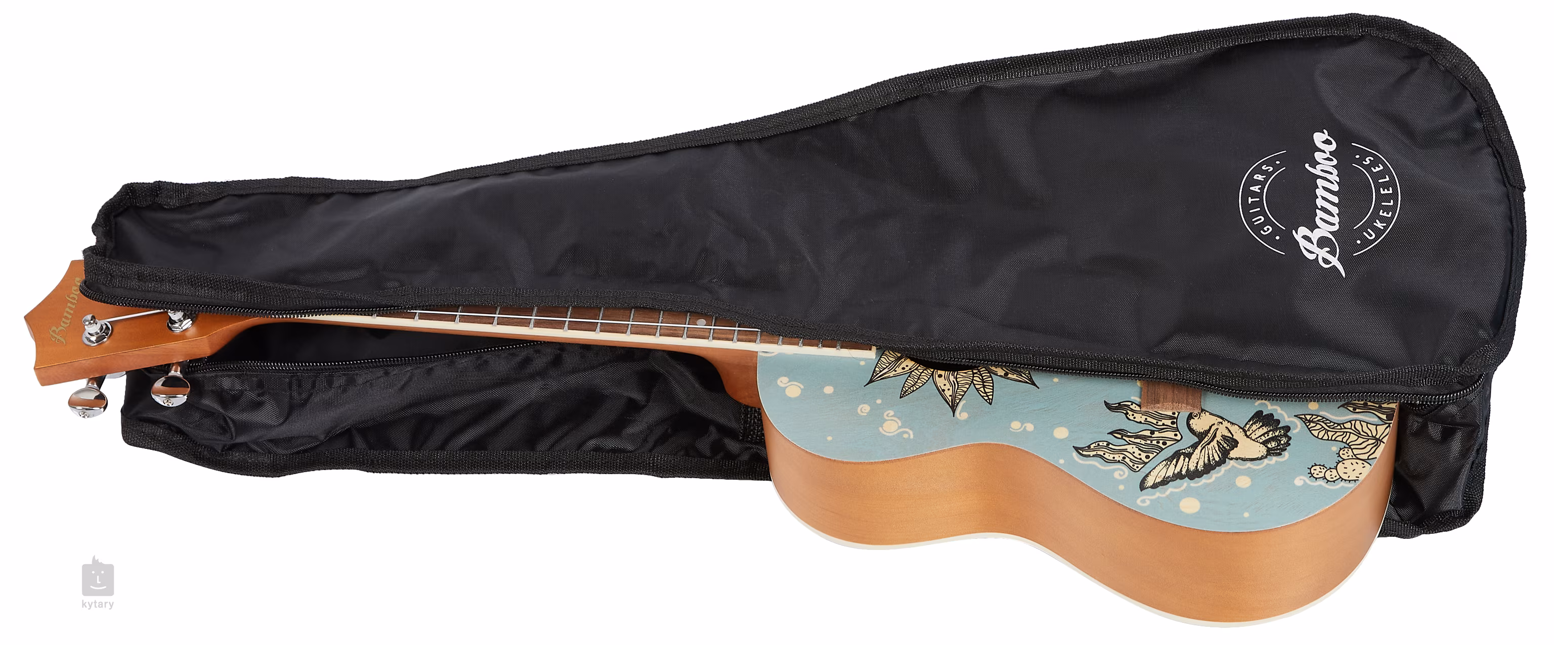 Řada New Generation značky Bamboo nabízí cenově dostupná ukulele v koncertní a sopránové velikosti ozdobená pestrobarevnými grafickými motivy. Tělo tohoto koncertního ukulele je zhotoveno z vrstvené lípy. Ke krku z okoumé je přilepen ořechový hmatník osazený osmnácti pražci. Struny jsou přes nultý a sedlový pražec z kosti ukotveny ve firemních otevřených mechanikách a ořechové kobylce.