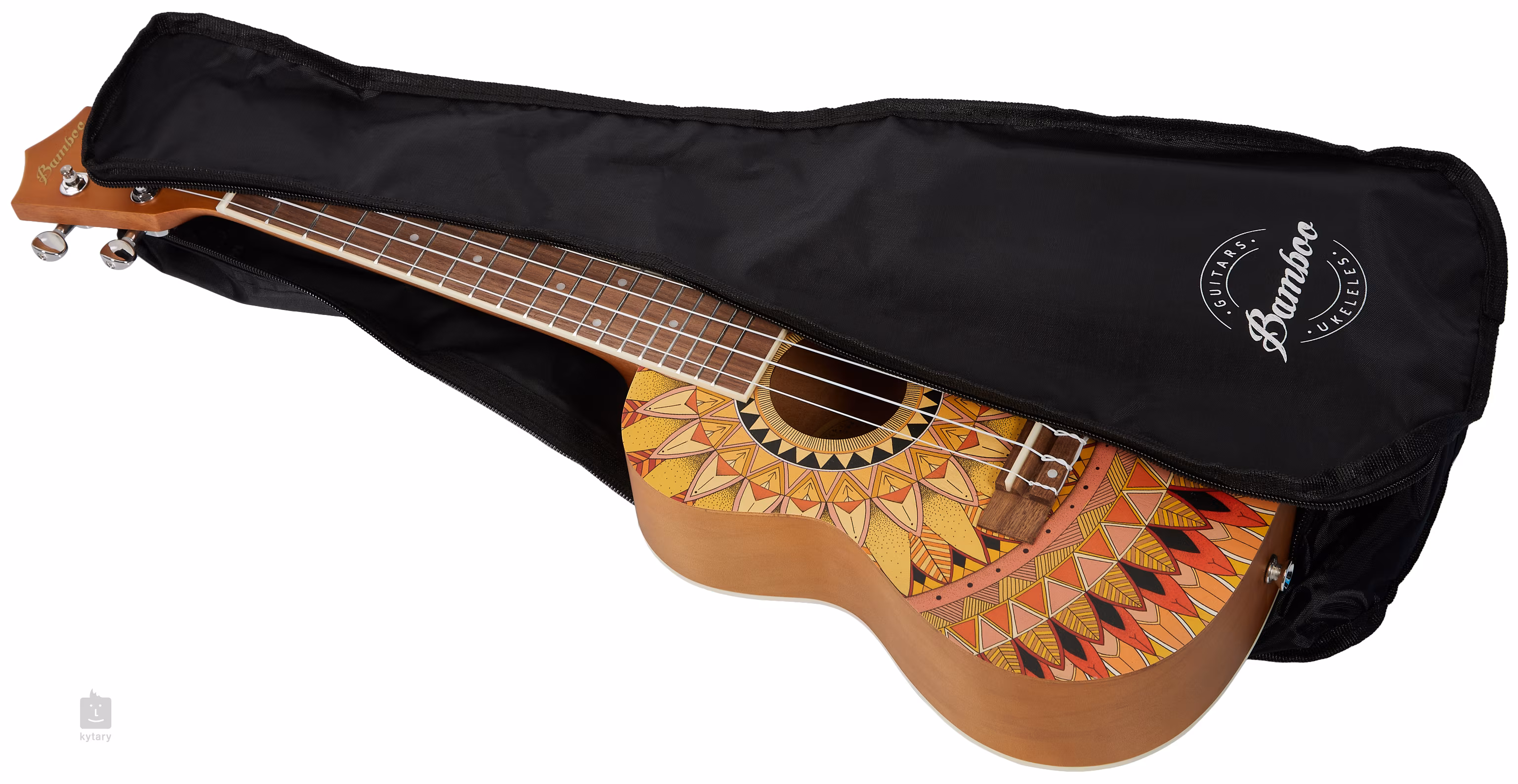 Řada New Generation značky Bamboo nabízí cenově dostupná ukulele v koncertní a sopránové velikosti ozdobená pestrobarevnými grafickými motivy. Tělo tohoto koncertního ukulele je zhotoveno z vrstvené lípy. Ke krku z okoumé je přilepen ořechový hmatník osazený osmnácti pražci. Struny jsou přes nultý a sedlový pražec z kosti ukotveny ve firemních otevřených mechanikách a ořechové kobylce.