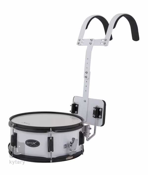 Pochodový snare bubínek od značky Basix, který nabízí skvělou kvalitu za skvělou cenu. Korpus je vyroben ze dřeva v bílé povrchové úpravě, ocelové obruče a hardware jsou pak černé. Součástí je také systém, sloužící k upevnění bubínku na ramena.