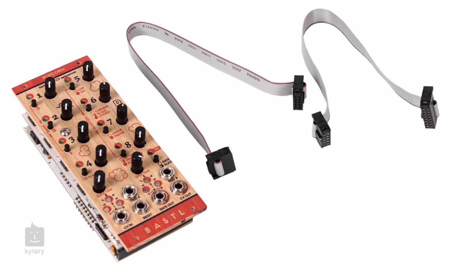 Popcorn je velmi kompaktní a muzikální sekvencér, kvantizér, arpeggiator… Na co si vzpomenete. Ke všem osmi krokům lze přistupovat velmi různorodě a kreativně, záleží, jakým signálem je nakrmíte. Při zapojení rytmického sekvencéru, například Knit Rideru, můžet použít dvojici Trigger vstupů A a B k manipulaci sekvence o 1-4 kroky dozadu nebo dopředu – záleží na nastavení knobů. Kroky mají nastavitelný čas Slide a Gate, CV vstupy a binární Gate konektory. Díky tomu lze rychle vytvořit velmi nápadité sekvence.
