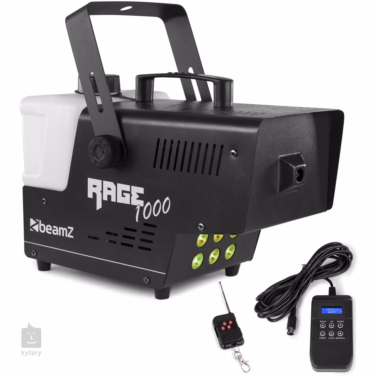 Výrobník mlhy Rage 1000LED od společnosti BeamZ v sobě kombinuje výkonný mlhostroj a intenzivní barevné podsvícení, které vám umožní osvítit mlhu rozmanitými barvami a tím oživit atmosféru každé akce. Díky nízké hmotnosti (4,9 kg) a kompaktním rozměrům (370 x 170 x 245 mm) poslouží nejen pro stálé instalace v hudebních klubech a barech, ale také pro mobilní zábavy, firemní večírky a další podobné akce.