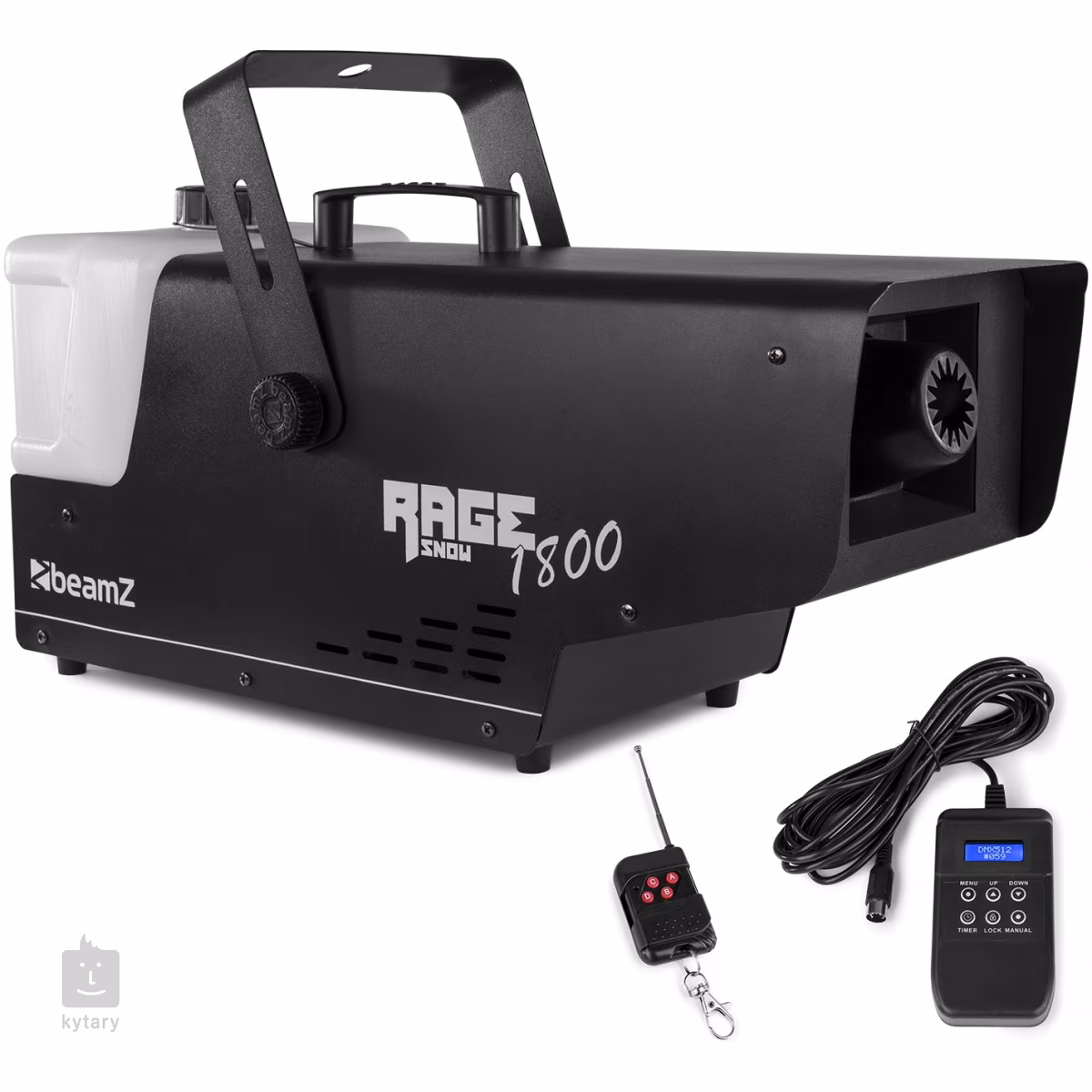 Rage 1800 Snow od společnosti BeamZ je vysoce výkonný výrobník sněhu vytvářející autentickou zimní atmosféru, díky které se během několika vteřin přenesete do ledového království, do Alp nebo na vrchol Mount Everest. Sněhové vločky se rozfoukají do prostoru a následně se vlnitým pohybem snesou k zemi. Výrobník dokáže vločkami zaplnit 10 m³ za minutu. Kapacita jeho zásobníku na kapalinu je 3,5 l.