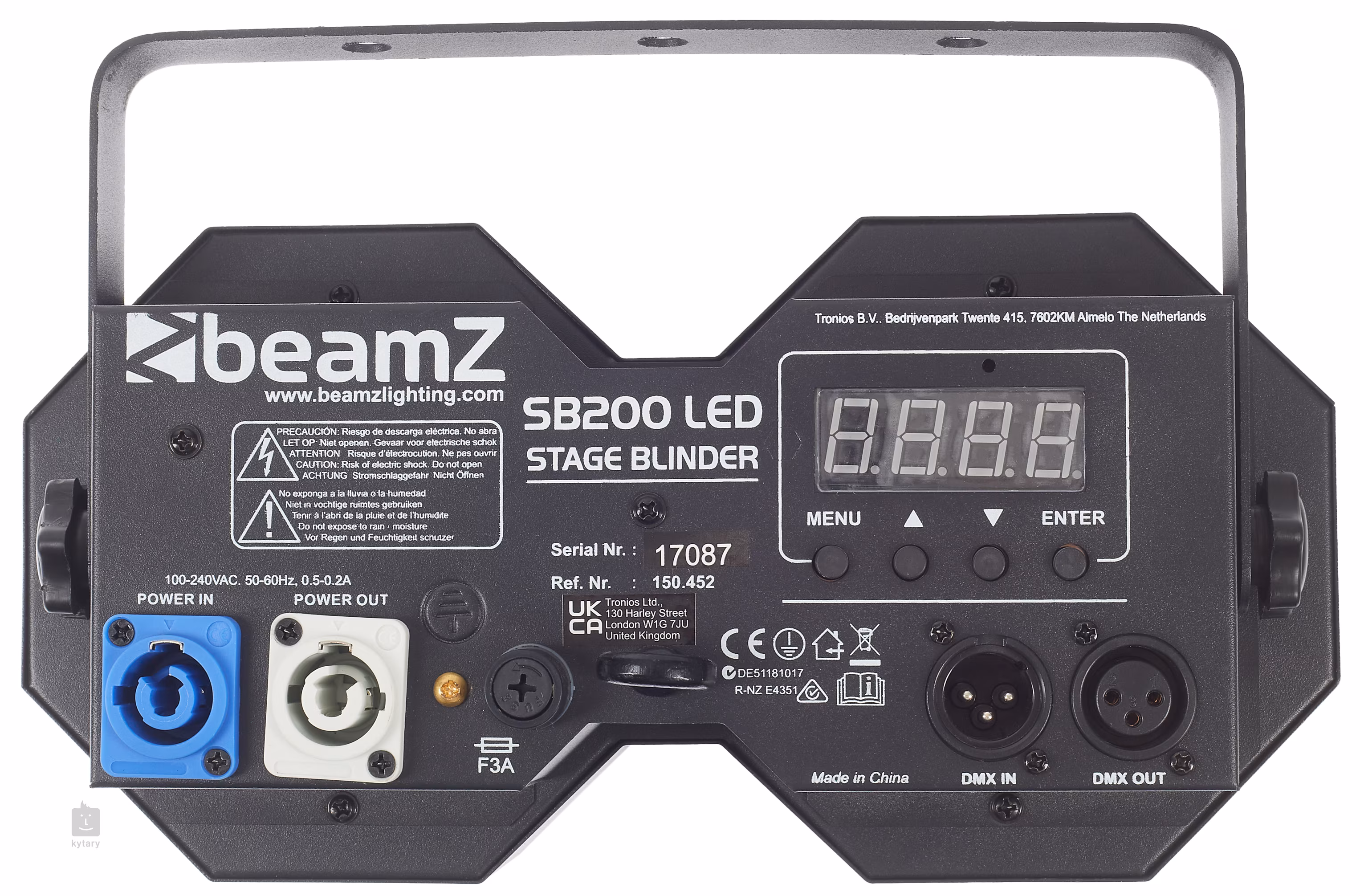 LED reflektor SB200 od společnosti beamZ je dvojitý stage blinder, který kromě obvyklých výhod LED diod, jako jsou energetická úspora, nízká produkce tepla a dlouhá životnost, využívá také technologii COB (Chip On Board). Ta spojuje velké množství LED čipů na malé ploše a vytváří tak integrované LED pole, které reflektoru dodává vyšší světelnou intenzitu a zajišťuje rovnoměrnou emisi světla.