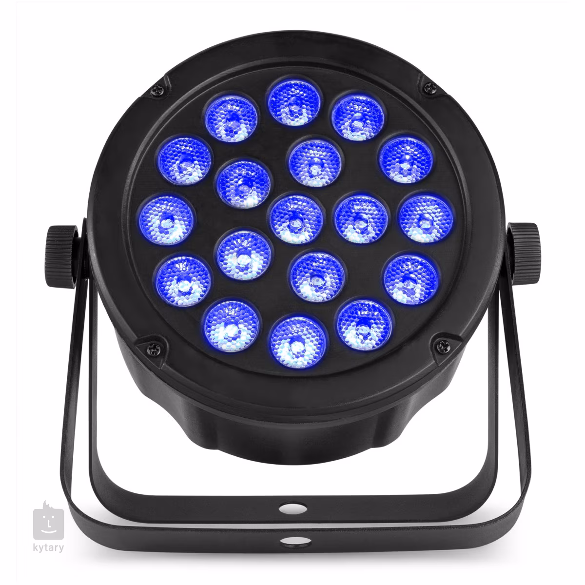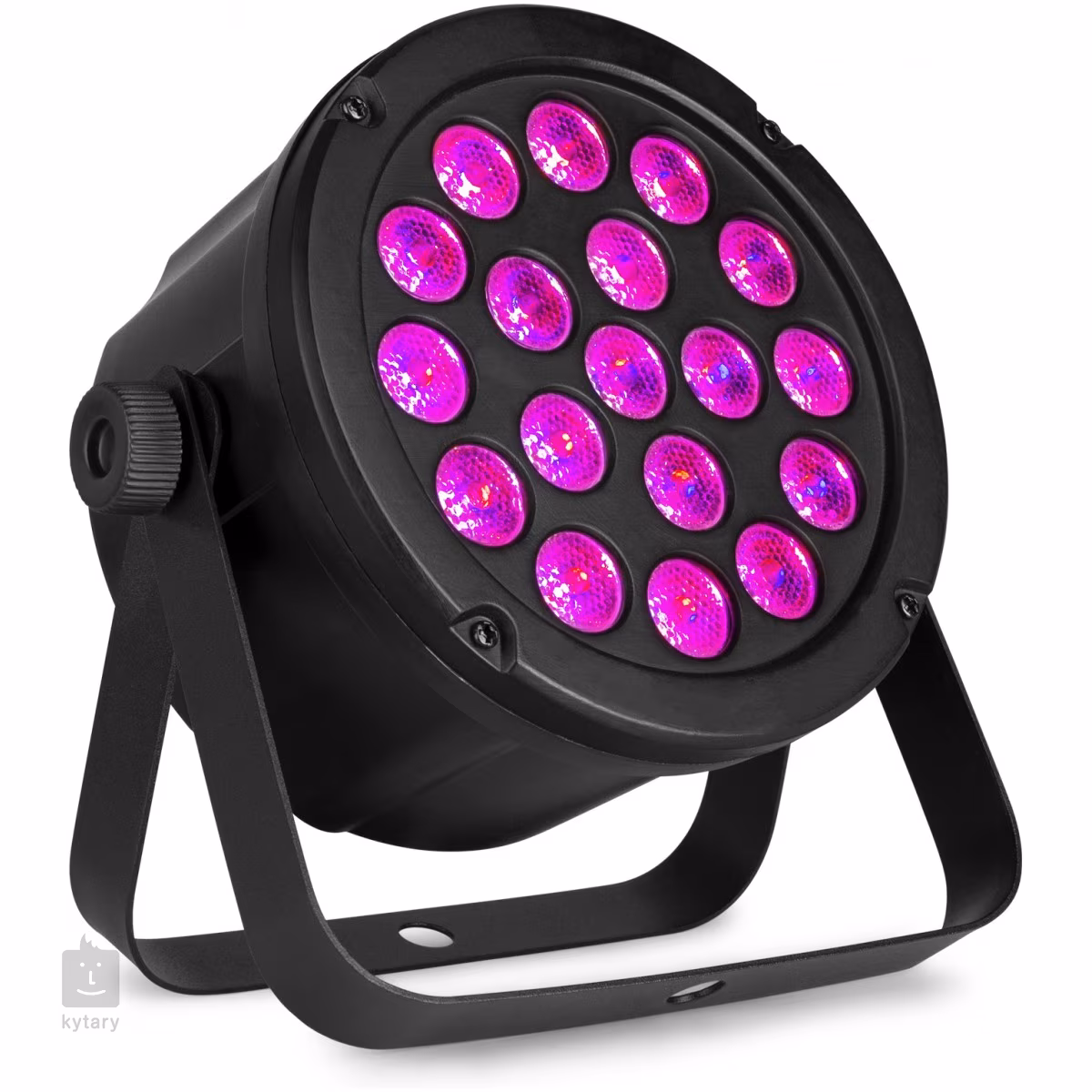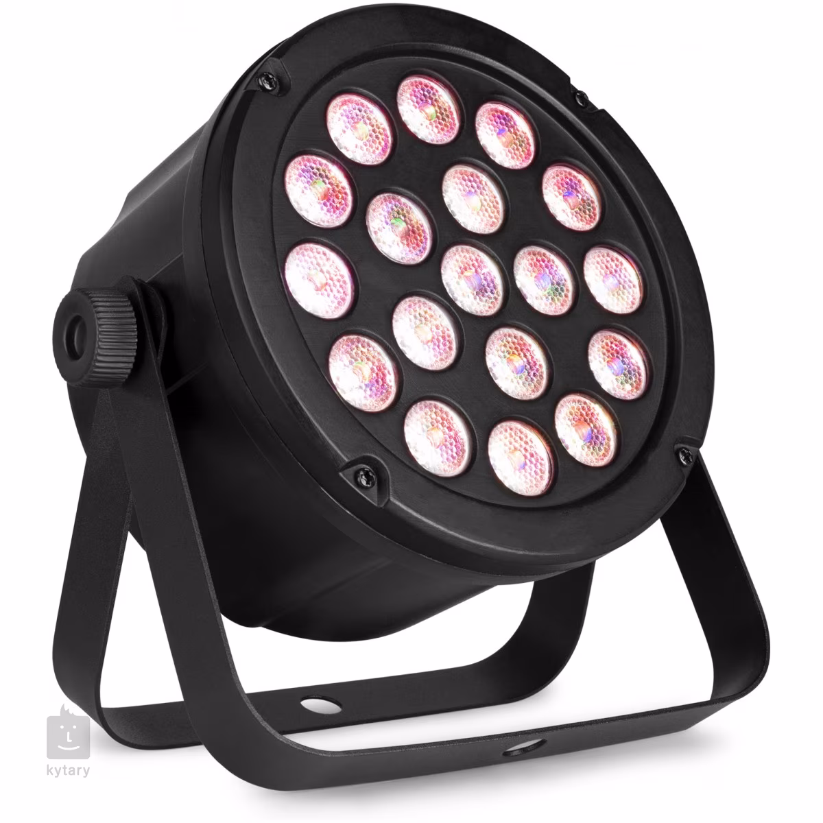 LED PAR reflektor SlimPAR45 od společnosti beamZ je kompaktní přístroj o hmotnosti necelého jednoho kilogramu, který využijete pro mobilní akce i fixní instalace. Jeho světelný zdroj tvoří osmnáct 3W LED diod typu RGB 3v1, které poskytují bohaté možnosti mixování barev. Každý z pixelů lze programovat zvlášť a vytvářet tak různá barevná schémata a kombinace. S vyzařovacím úhlem 12° reflektor produkuje rozptýlené wash osvětlení, které podtrhne atmosféru každé akce. Součástí výbavy je také stroboskopický efekt s nastavitelnou rychlostí blikání.