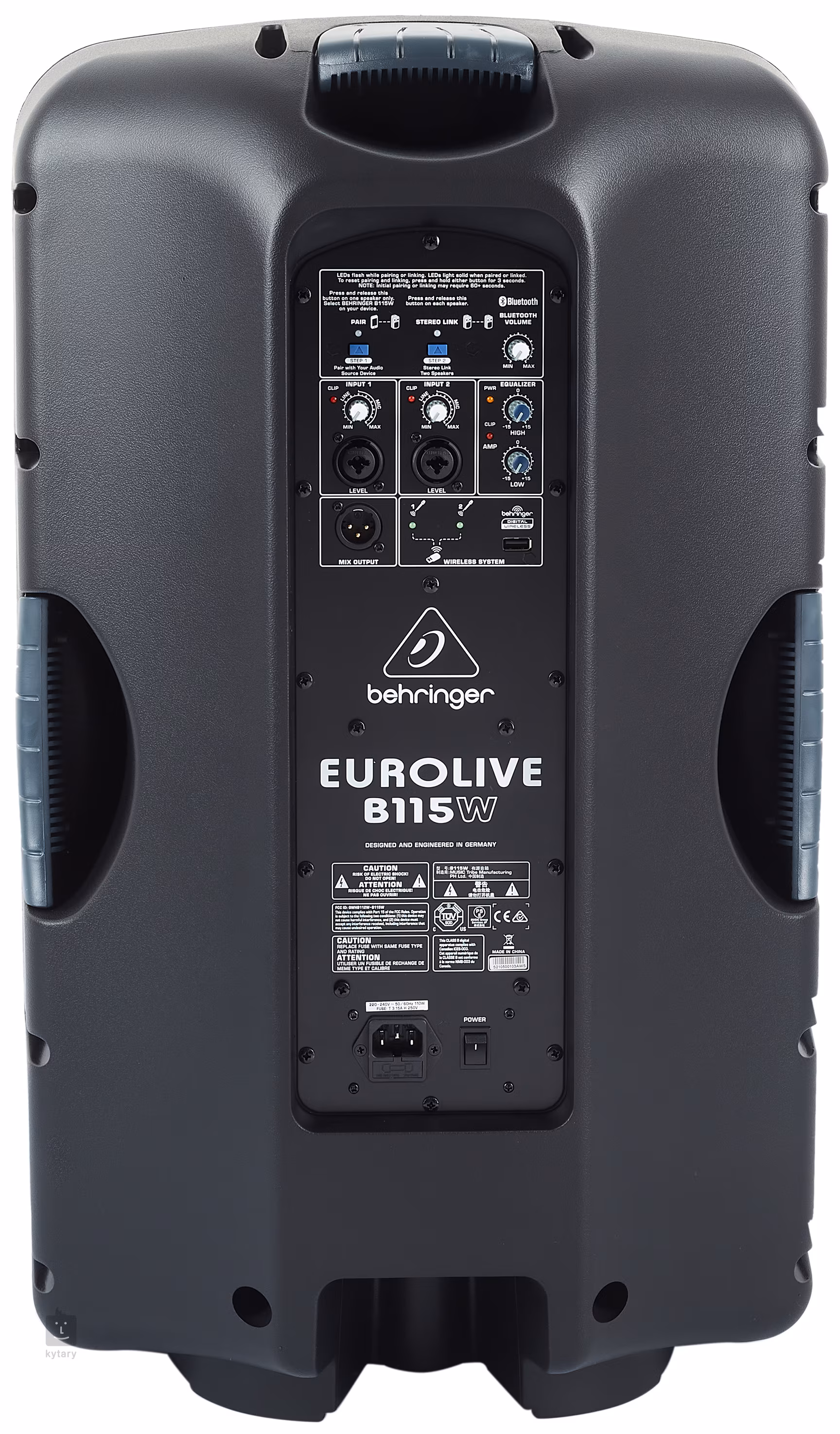 Uvnitř odolné konstrukce B115W se nachází 15“ basový a 1,35“ výškový reproduktor, které vám spolu s Bi-amp zesilovačem třídy D poskytnou maximální výkon až 1000 W. Hlavní panel disponuje dvoupásmovým ekvalizérem, knoby pro úpravu hlasitosti, vstupem pro Behringer Wireless systémy a tlačítky pro Bluetooth bezdrátové propojení, kdy můžete připojit hudební přehrávač a současně druhý B115W reproduktor pro kvalitní stereo zvuk. Dále zde naleznete dva kombinované vstupy pro mikrofon nebo hudební nástroj a XLR výstup pro připojení do dalšího PA systému. Reproduktor můžete umístit na zem nebo připevnit na reproduktorový stojan, pár robustních madel vám potom zajistí pohodlný a bezpečný transport mezi produkcemi.
