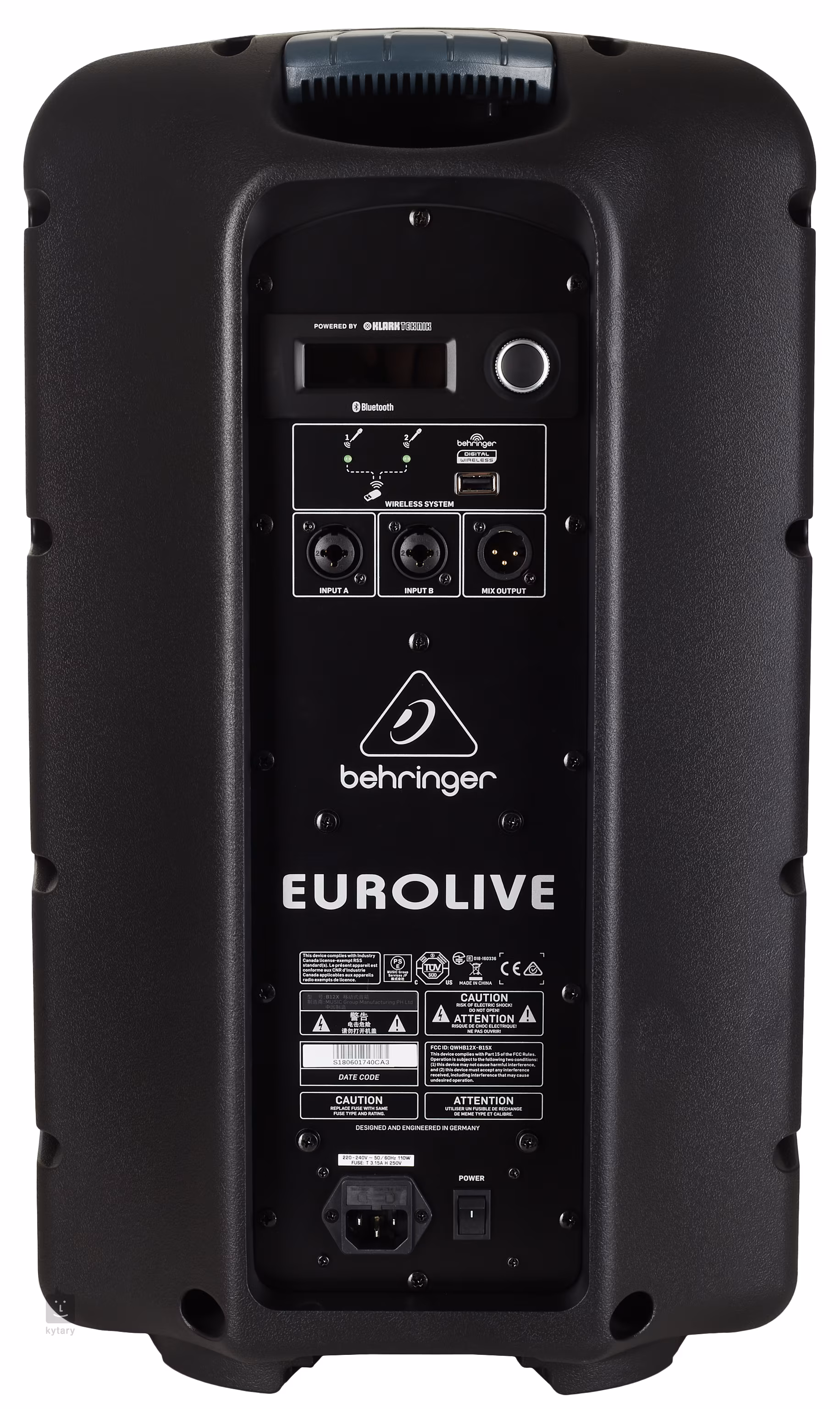 Uvnitř odolné konstrukce B12X se nachází 12“ basový a 1“ výškový reproduktor, které vám spolu s Bi-amp zesilovačem třídy D poskytnou maximální výkon až 1000 W. Hlavní panel disponuje inteligentním systémem od Klark Tektik s přehledným LCD displejem, bezdrátovou technologií Bluetooth a vstupem pro Behringer Wireless. Nastavení vstupního signálu ovládáte zcela bezdrátově prostřednictvím aplikace ve vašem smartphonu nebo tabletu, kde máte k dispozici tříkanálový mixpult s ovladači hlasitosti, třípásmovým EQ a mnoho dalších funkcí. Dále zde naleznete dva kombinované vstupy pro mikrofon nebo hudební nástroj a XLR výstup pro připojení do dalšího PA systému. Reproduktor můžete umístit na zem nebo připevnit na reproduktorový stojan, pár robustních madel vám potom zajistí pohodlný a bezpečný transport mezi produkcemi.