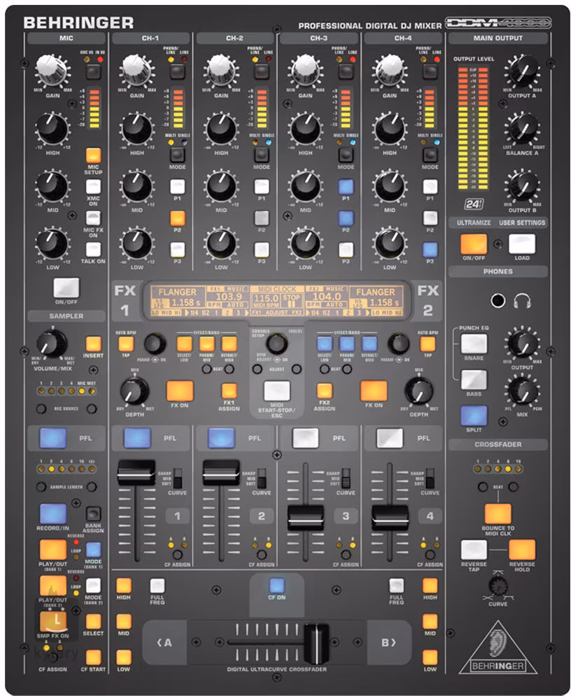 DDM4000 od Behringer je nejmodernější 32bitový digitální DJ mixážní pult, nabitý kreativními nástroji, v jehož intuitivním uspořádání se budete ihned cítit jako doma. Úpravy, ukládání a načítání nastavení se stane hračkou!
