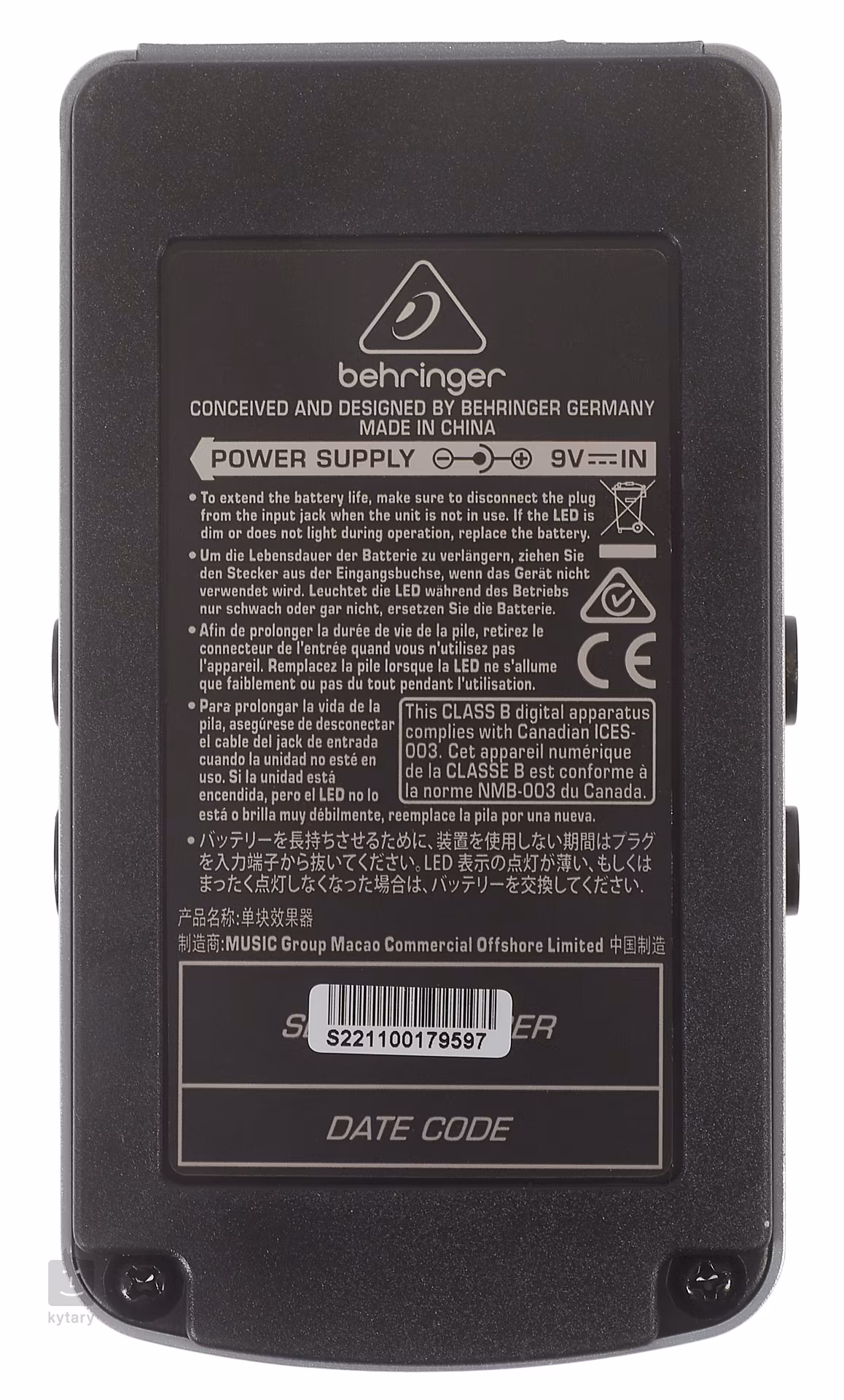 K napájení pedálu je zapotřebí 9V baterie nebo 9V adaptér (není součástí balení).