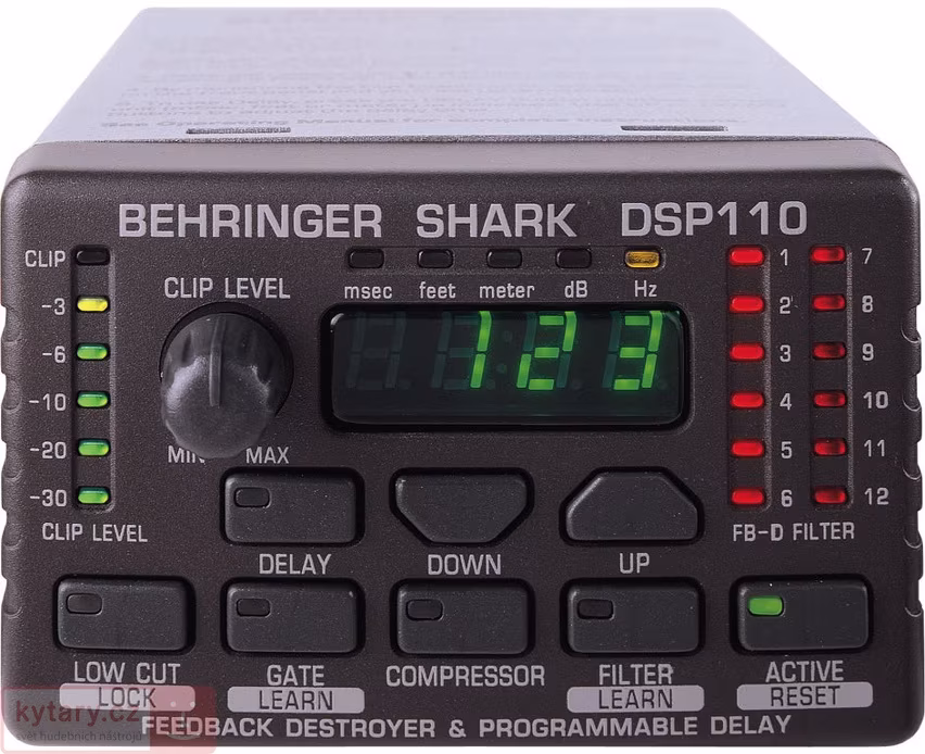 Eliminátor zpětné vazby, filtr, zpožďovací linka, kompresor, gate, 1/4" TRS a XLR.