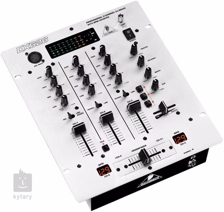 PRO MIXER DX626 je profesionální, vysoce kvalitní 3-kanálový DJ mixer s integrovaným Beat-Per-Minute (BPM) counterem, který vychází z osvědčené 3-kanálové konstrukce, milované DJ po celém světě – začátečníky i profesionály. Jeho super-plynulý, dual-rail "Ultraglide" crossfader s až 500.000 pracovními cykly zaručuje bezchybný chod po mnoho let. Obsahuje celou řadu funkcí, například tři dvojité stereo vstupy kanálů s ovládáním zisku a třípásmovým EQ s potlačením pásem (-32 dB); jeden kanál lze přepnout do režimu mikrofonního vstupu ULN studiové kvality; manuální funkce Talkover, která umožní pracovat zcela novými a inspirativními způsoby. Mezi další funkce patří funkce Master/PFL s možností mixu a měřičem úrovní s pamětí špiček a s vyhrazeným PFL sloupcovým grafem. K dispozici je také BNC socket pro lampičku na husím krku. DX626 nabízí velmi snadné použití – a volnou ruku nad vaší kreativitou.