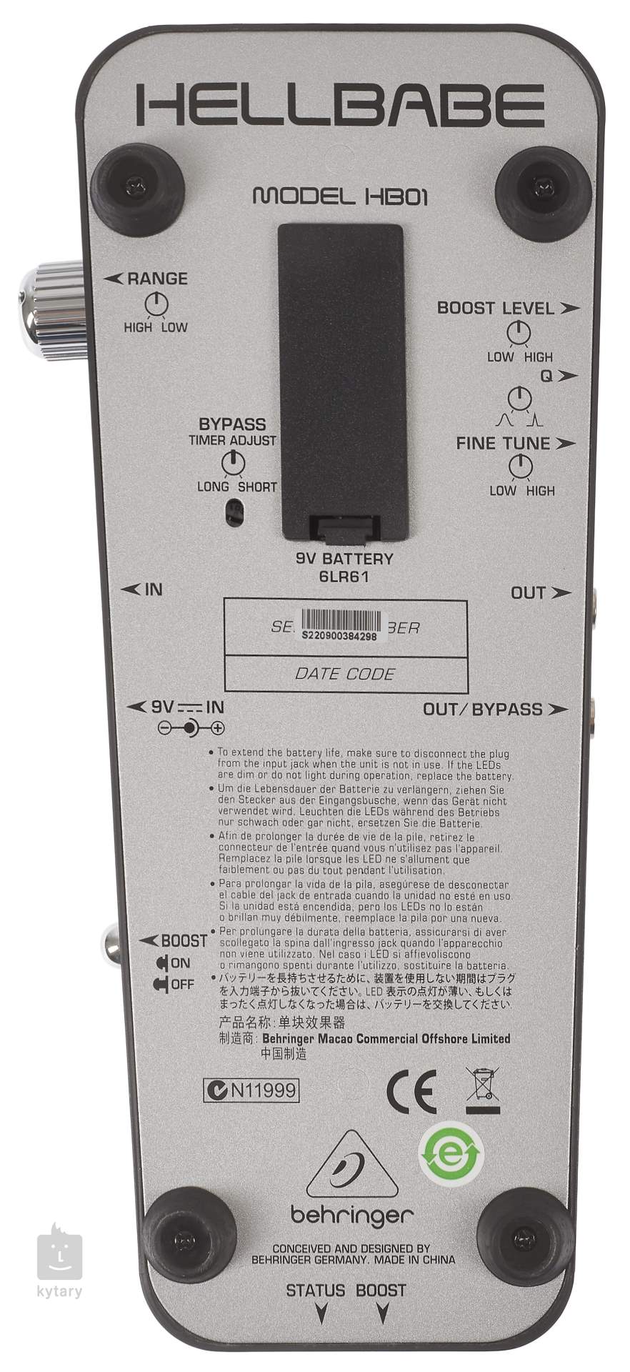 Wah-Wah pedál Behringer HB01 Hell-Babe vám nabídne jak klasické, tak i moderní zvuky kvákadel. Tento všestranný wah-wah pedál vám umožní nastavit křivku filtru (ovladač Q), upravit frekvenční rozsah v pozici nášlapu patou dolů (Range) i patou nahoru (Fine) nebo zesílit signál až o 15 dB.