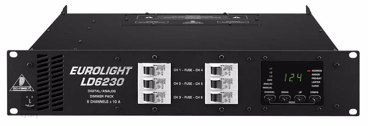 6-channel, DMX/analog-controlled dimmer pack with up to 10 A load per channel