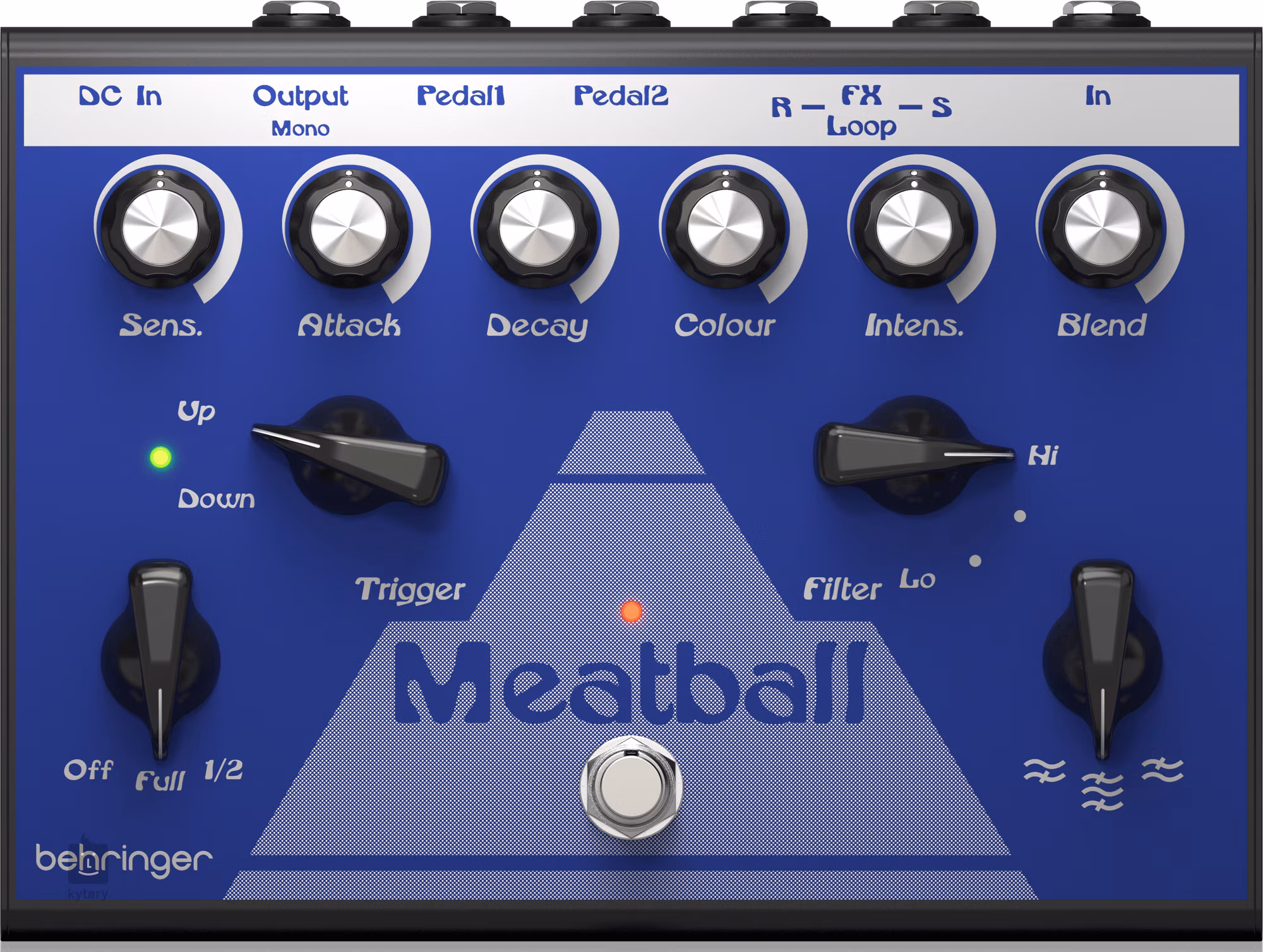 Behringer Meatball je výrazný envelope filter inspirovaný legendárními efekty 90. let, který dodá vašemu tónu pořádnou dávku šťávy a energie. Tento plně analogový pedál v sobě ukrývá obrovské množství zvukových možností, kterými si zabavíte na hodně dlouhou dobu. Můžete jej využít jako automatický wah-wah pedál nebo flanger, dodat své kytaře či baskytaře epický synťákový brum nebo vytvořit pulzující animované zvukové textury. Ať už Meatball využijete jakkoliv, můžete se spolehnout na to, že vám dopřeje pořádnou dávku funku, devadesátkového rocku nebo jiných alternativních žánrů!