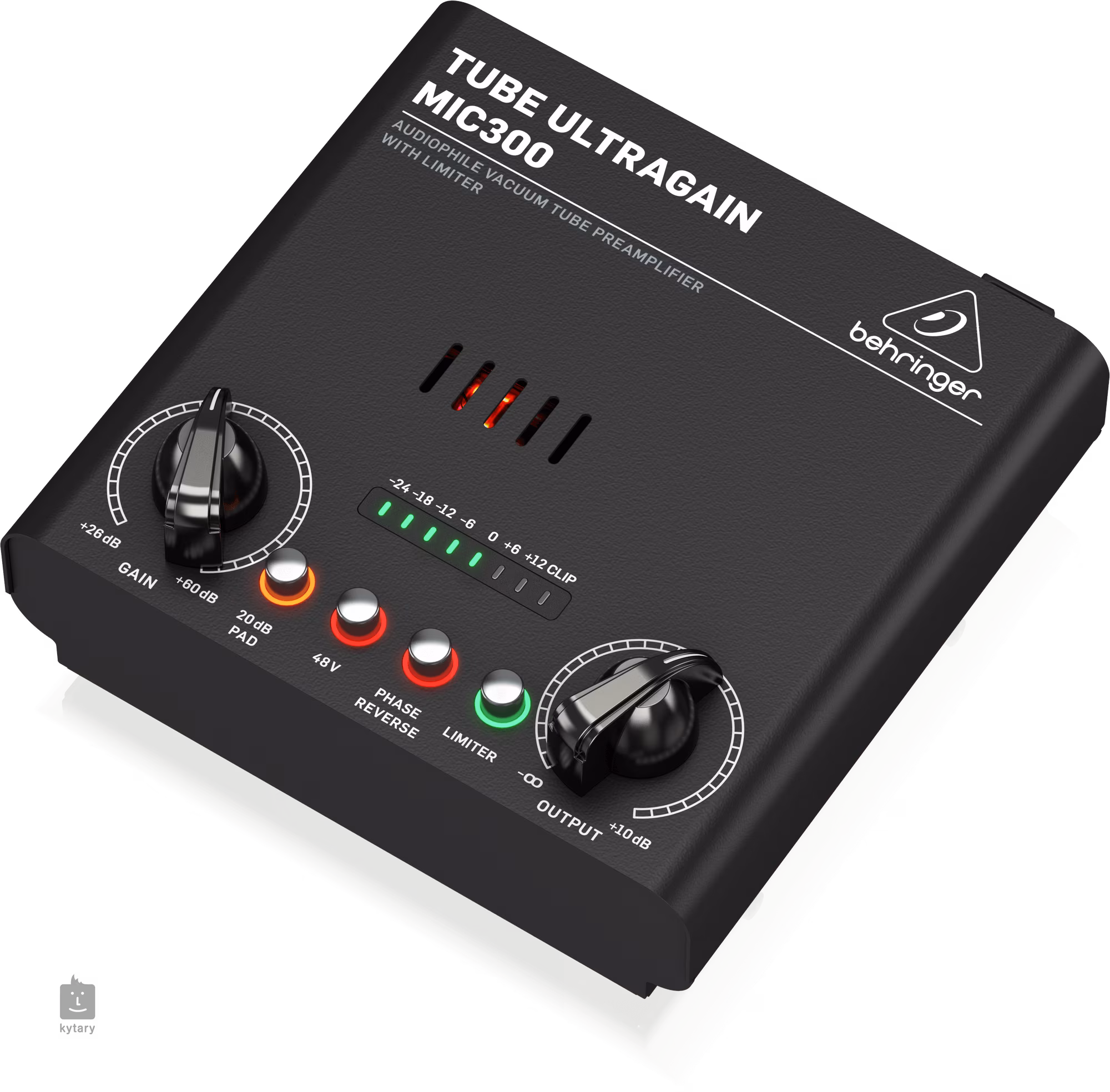 Kromě zvuku vintage lampového předzesilovače funguje MIC300 také jako špičkový DI box. Propracovaný výstupní limiter zabraňuje přebuzení výstupního signálu. K dispozici je fantomové napájení +48 V, přepínač Phase Reverse a 20 dB Pad pro maximální flexibilitu při zpracování vstupního signálu.