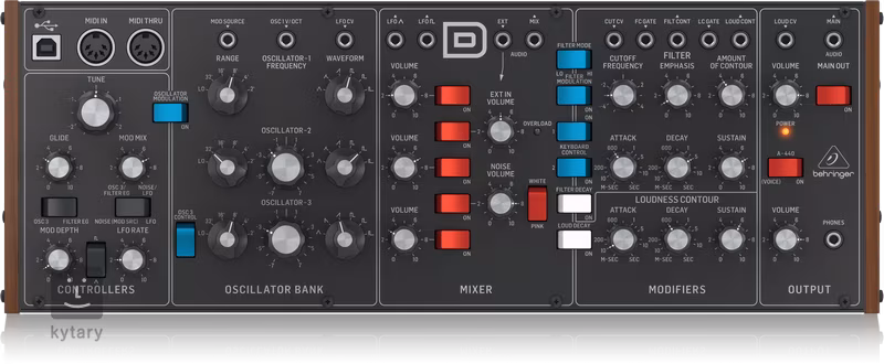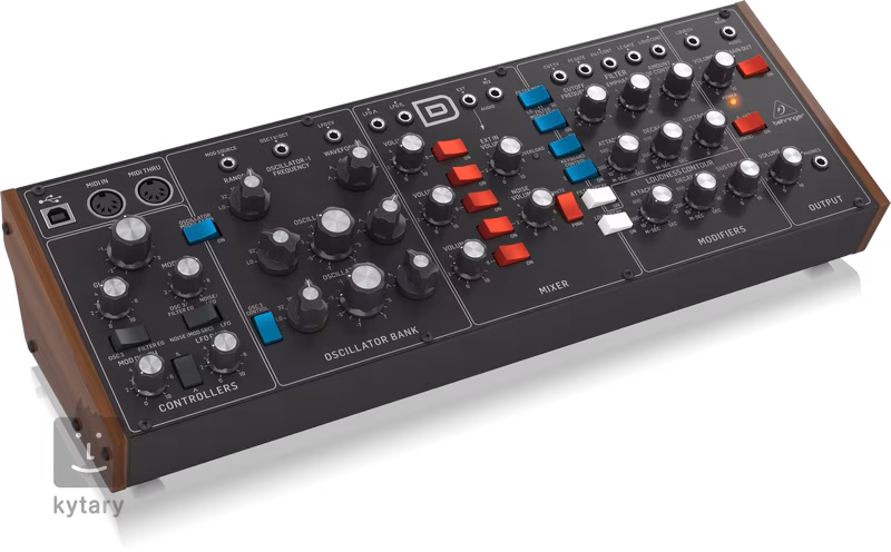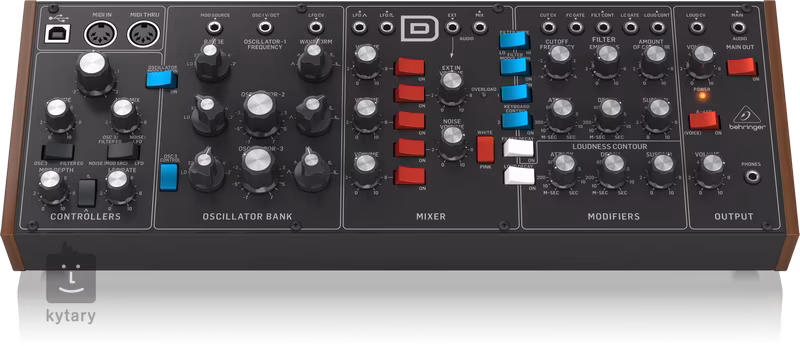 Behringer přináší zvuk legendárního analogového syntezátoru Model D za zlomek ceny původního modelu. Povedený klon disponuje naprosto stejnou architekturou i vnitřním obvodem, k dispozici tak jsou tři oscilátory s pěti vlnovými průběhy a nastavitelnou pulsní šířkou, 24 dB ladder filtr s jedinečným charakterem, trojúhelníkové/čtvercové LFO, lahodný overdrive i dva druhy šumu.