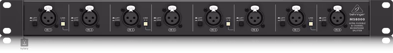 Behringeer MS8000 je mikrofonní splitter s osmi vstupy a šestnácti výstupy. Uplatnění najde všude tam, kde je třeba poslat signál z mikrofonu nebo DI boxu na víc míst, například do mixu a odposlechové cesty.