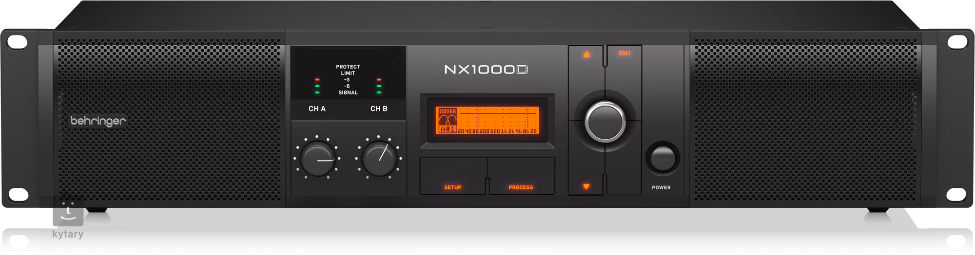 Behringer NX1000D je velmi lehký dvoukanálový zesilovač třídy D o výkonu 1000 W vybavený interní DSP jednotou a kompenzací impedance reproduktorů SmartSense.