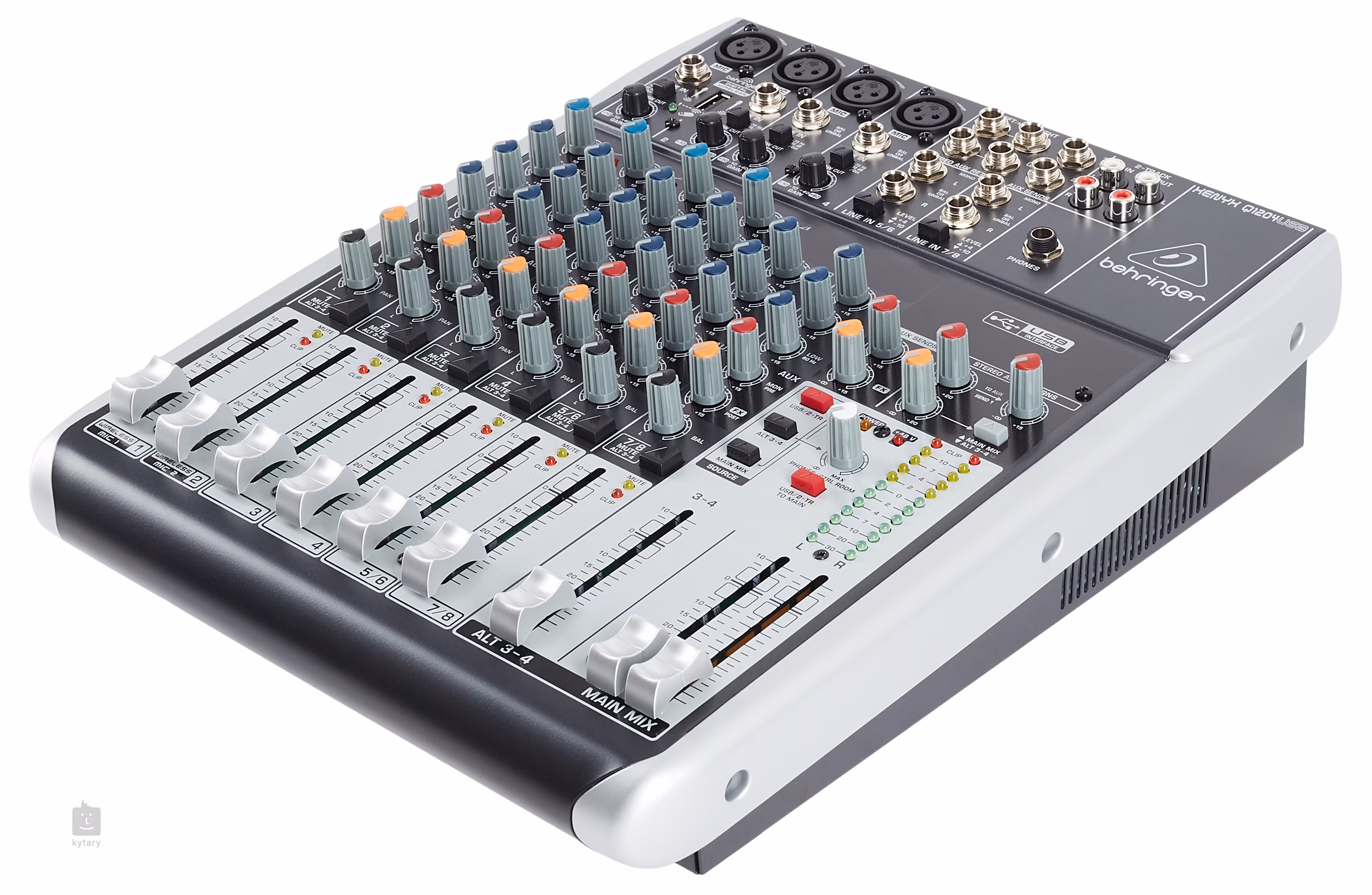 XENYX Q1204USB je analogový mixážní pult s USB rozhraním, zabudovaným kompresorem, dvěma podskupinami a dvěma FX sendy (post a pre) na všech kanálech. Pro vstup signálu slouží čtyři mikrofonní/linkové vstupy a dva stereo kanály. Mikrofonní kanály disponují kompresorem pro kontrolu dynamiky, všechny kanály mají třípásmové korekce, 2x send pro obohacení zvuku o externí efekty nebo potřeby monitoringu, ovladač panoramy, gainu a tlačítko pro přiřazení kanálu do podskupiny.