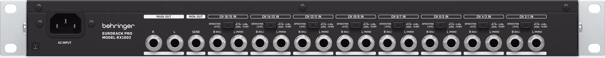 Pro přesné vizuální monitorování úrovní jsou k dispozici dva vysoce přesné LED metru se sedmi segmenty pro levý a pravý signál hlavního mixu. Hlavní mixové výstupy jsou realizovány pomocí 6,3 mm TRS konektorů. Na přední starně se nachází také sluchátkový výstup s vlastním ovladačem úrovně. Kvalitní aretační otočné ovladače zajišťují dlouhodobou spolehlivost a interní spínaný napájecí zdroj (100 - 240 V~) zaručuje audio bez šumu a nízkou spotřebu energie. S Behringer RX1602 V2 zkrátka získáte profesionální a spolehlivý nástroj pro komplexní správu vašeho zvuku.