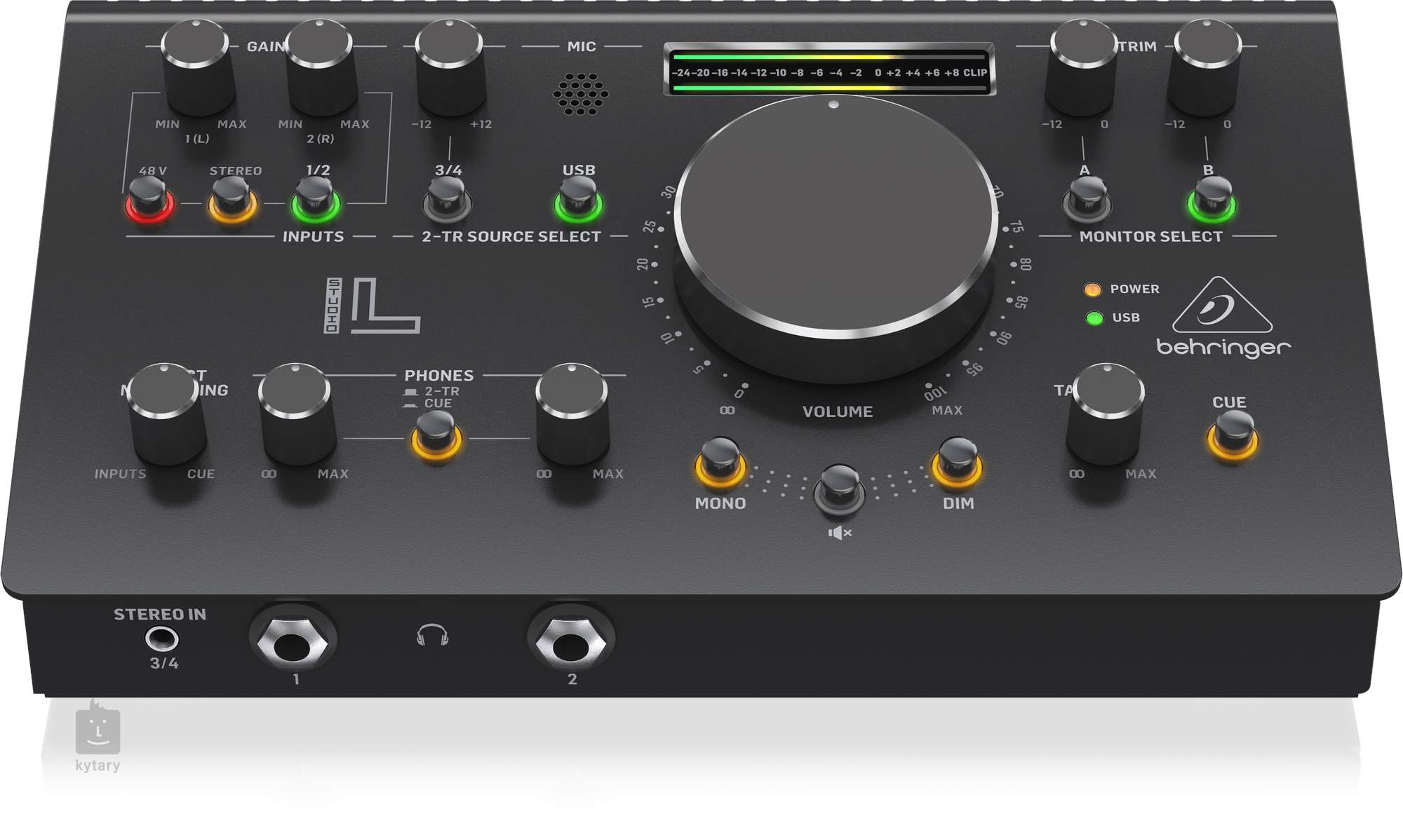 Behringer Studio L je profesionální řídicí centrum pro studiový monitoring, které v sobě spojuje vysoce kvalitní USB audio rozhraní 2x2 s rozlišením 24-bit / 192 kHz a špičkové předzesilovače Midas známé svou čistotou, vysokým gainem a velmi nízkým šumem. Díky těmto komponentům je zaručena křišťálově čistá signálová cesta vhodná pro jakýkoliv typ nahrávání – od vokálů po nástroje.