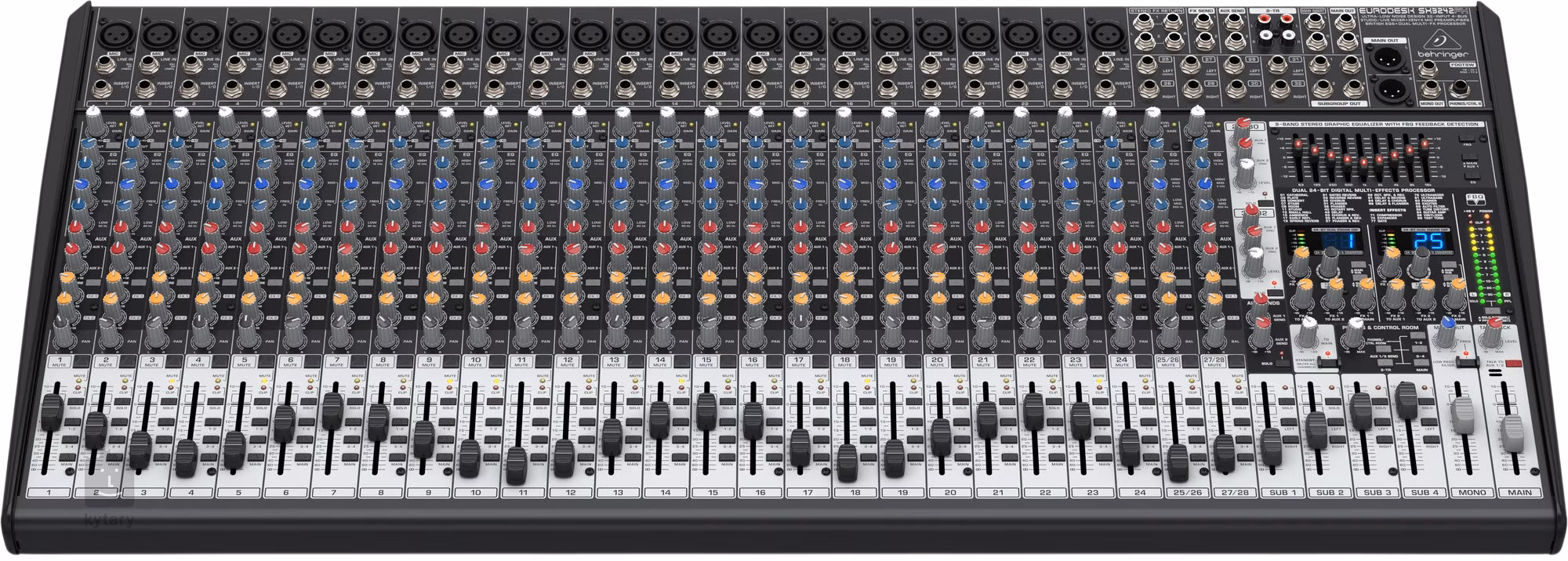 Behringer SX3242FX je velkoformátový analogový mixážní pult, který nabízí profesionální zvuk, široké možnosti routingu a integrované efekty za velmi dostupnou cenu. Díky 24 mikrofonním předzesilovačům XENYX s vysokým dynamickým rozsahem a charakteristickým analogovým zvukem je ideální pro live ozvučení, studia i náročnější produkci. Tento model poskytuje vše potřebné pro tvorbu bohatých a detailních mixů s typickým „britským“ charakterem.
